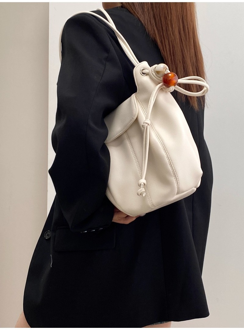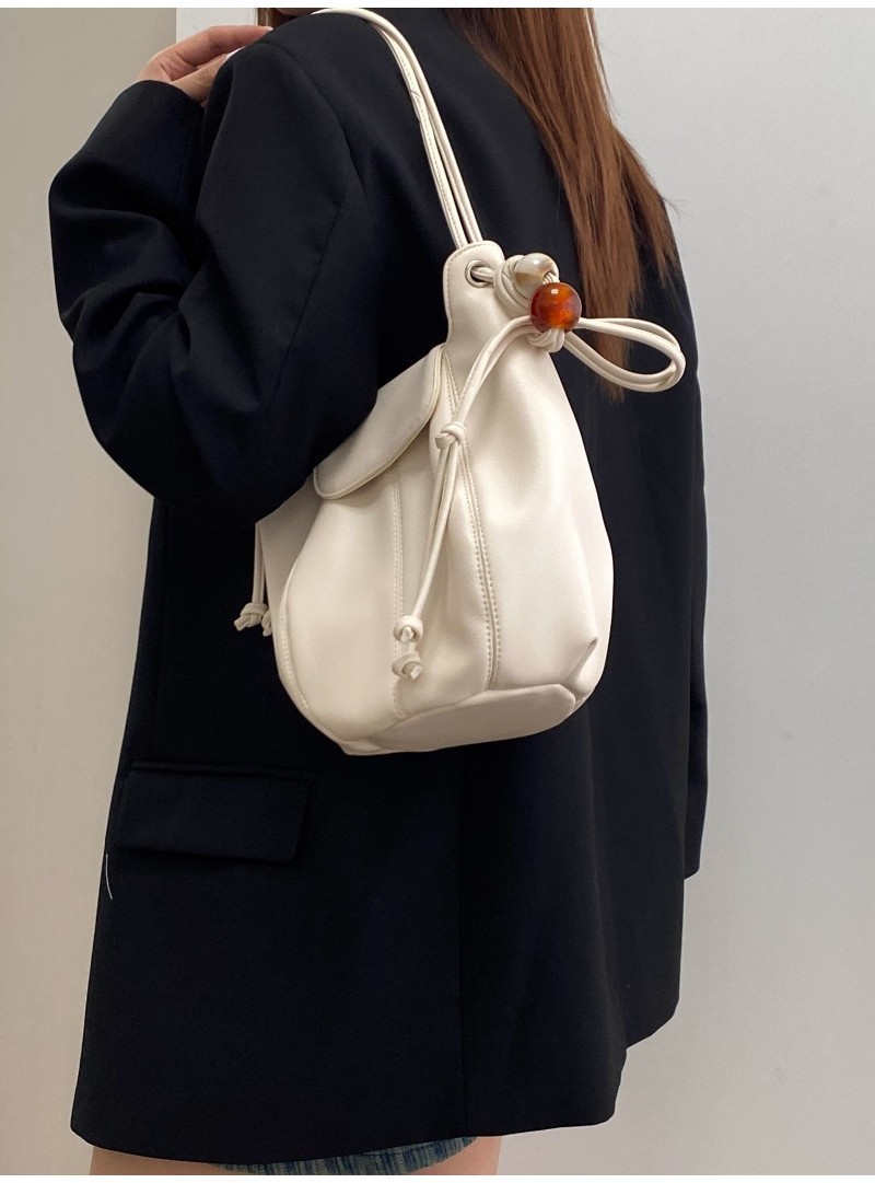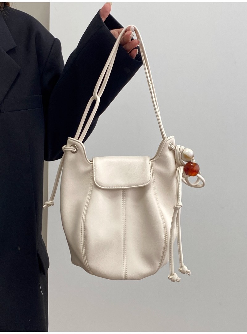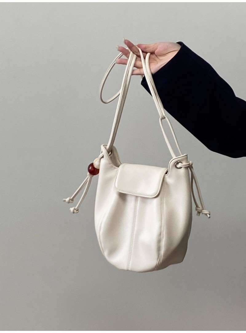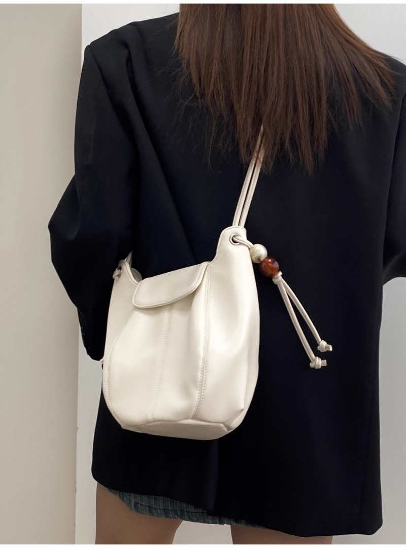 Ielgy Ladies White Simple All-Match Preppy Style High-End Bucket Shoulder Messenger Bag