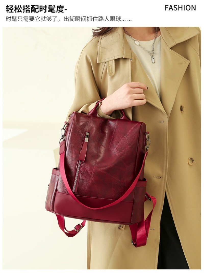 Ielgy Large Capacity Soft Leather Backpack Casual All-Match Ladies PU Backpack