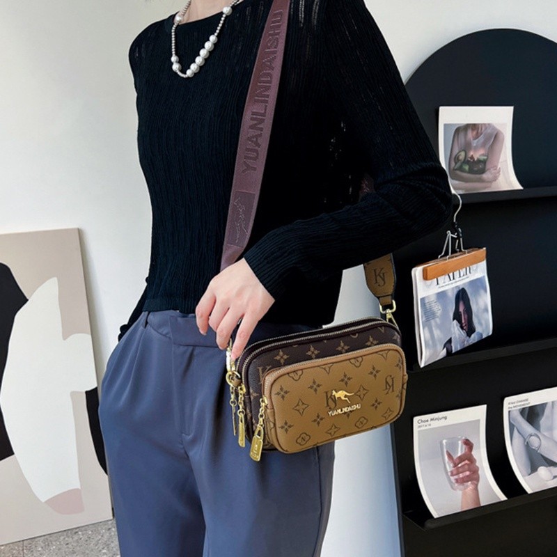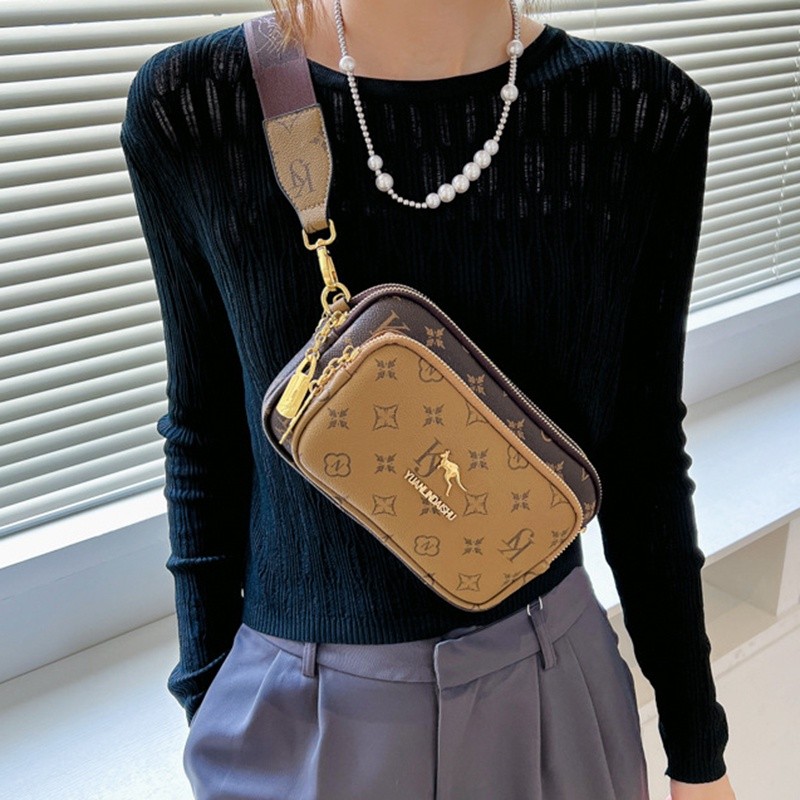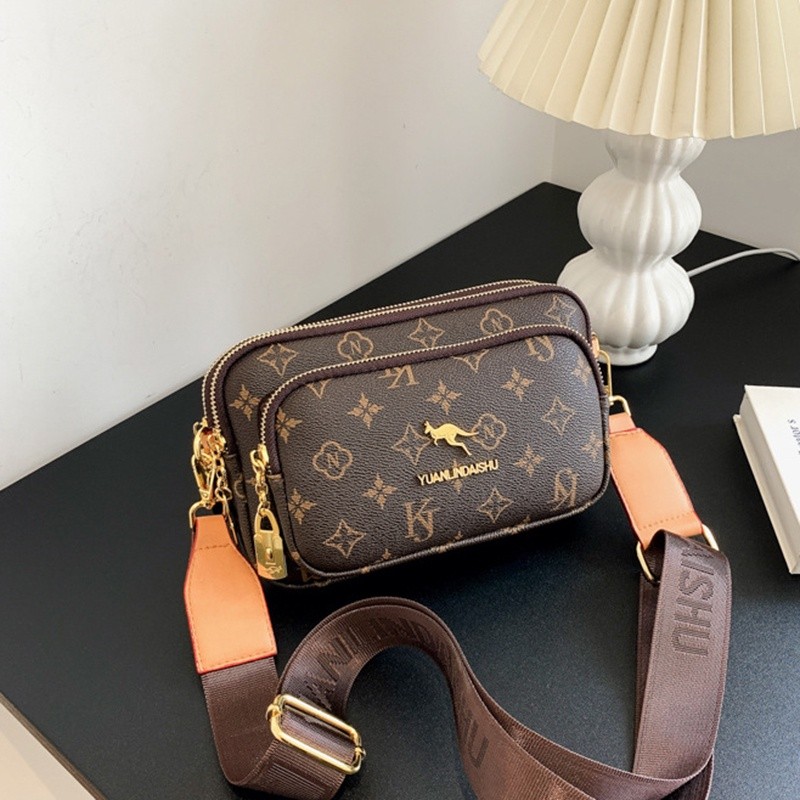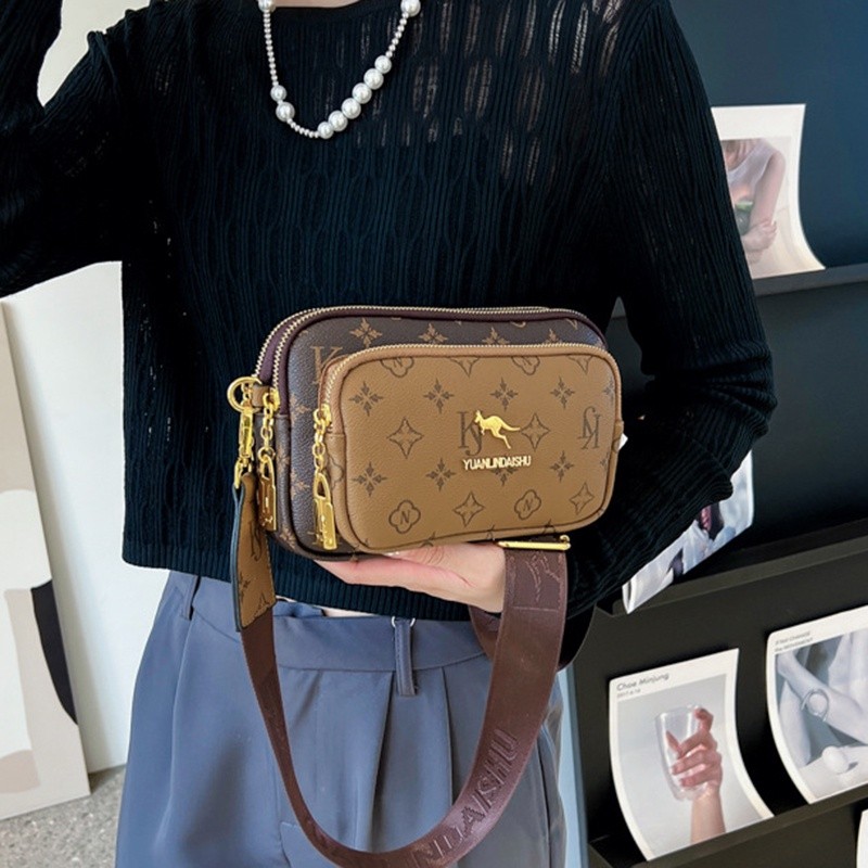IELGY Messenger Bag Women's High-end Retro Horizontal Square Printed Shoulder Bag