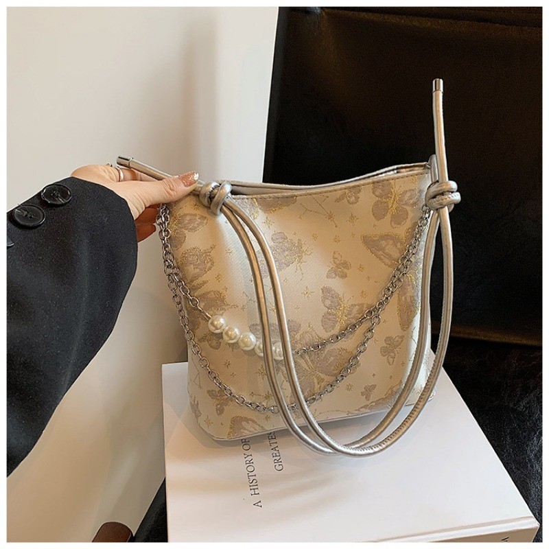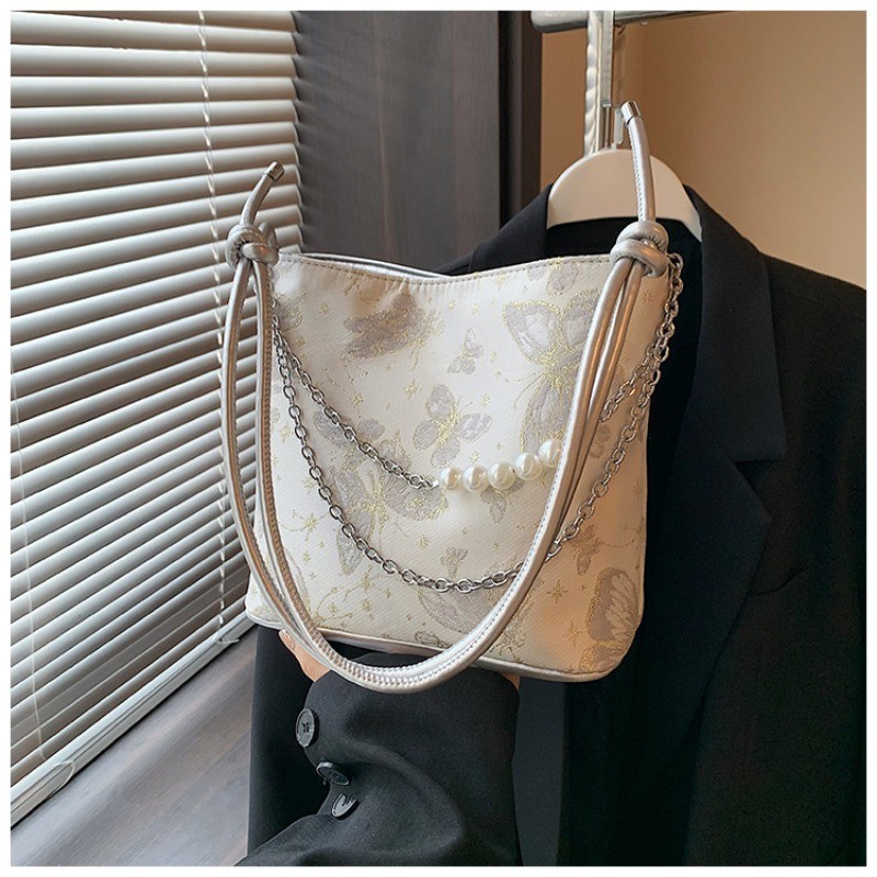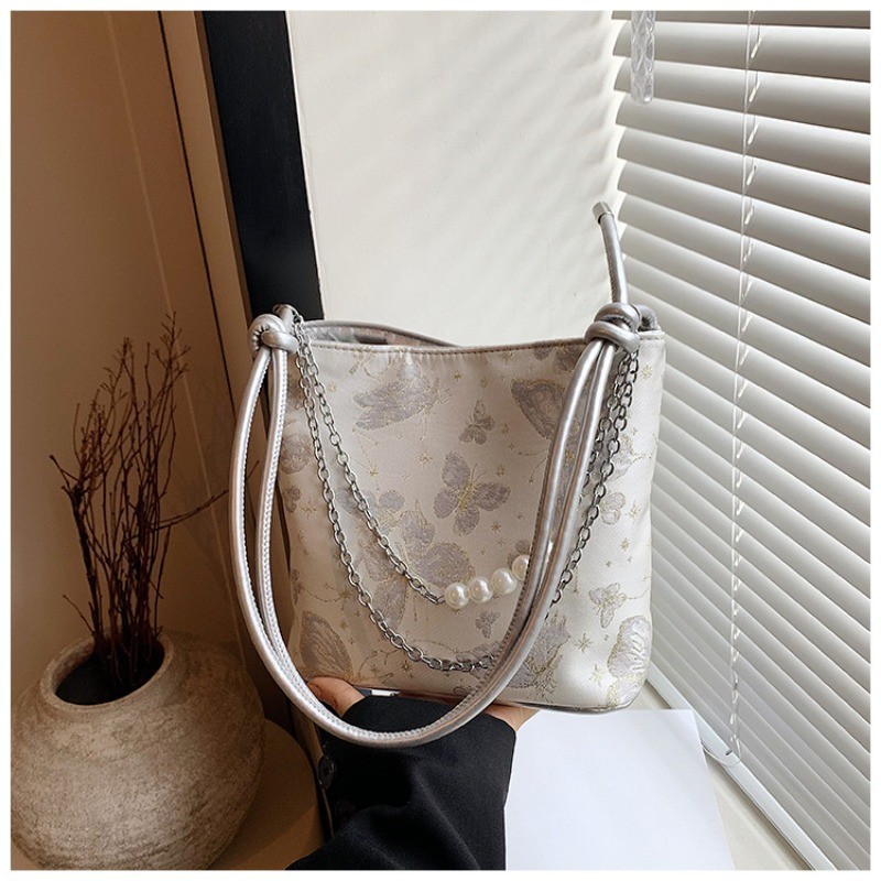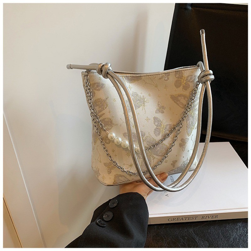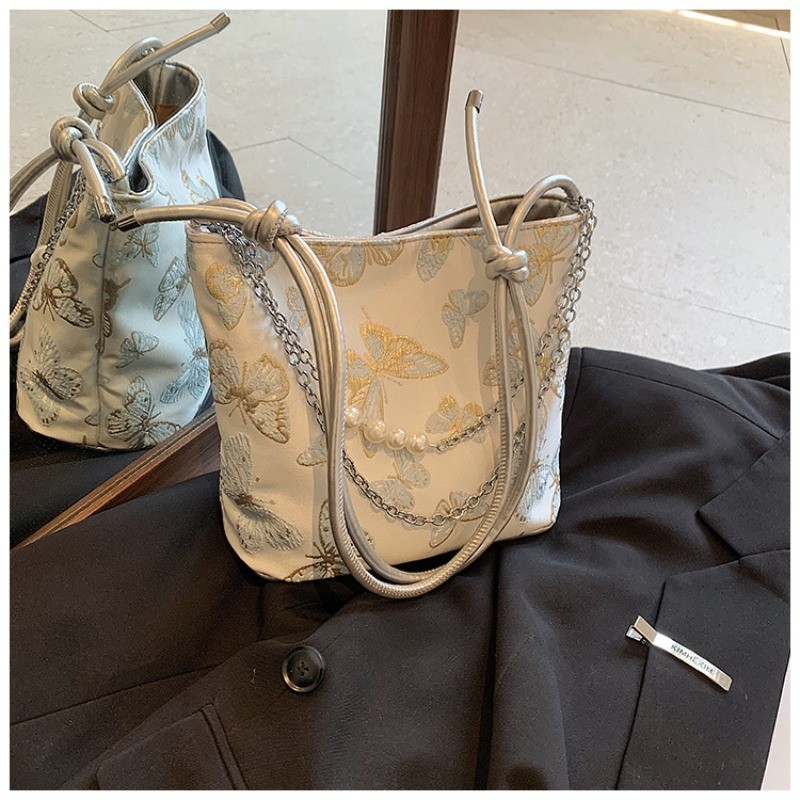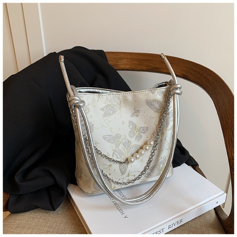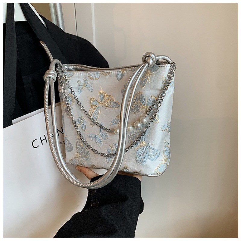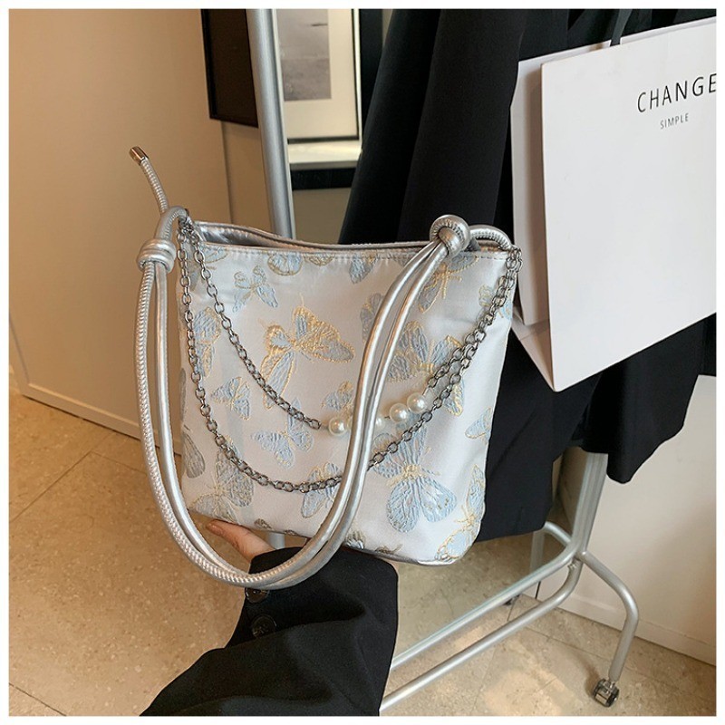 Ielgy New Chinese Fashion National Style Embroidered Butterfly Underarm Bucket Bag Large Capacity Simple All-Match Shoulder Bag