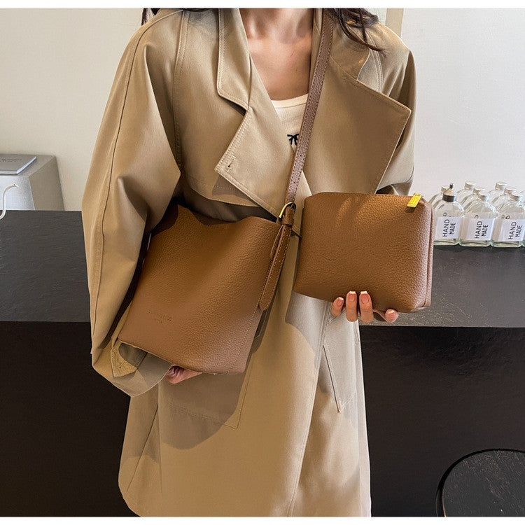 Ielgy Niche Design Bucket Bag Simple All-Match Cross-Body Retro Commuter Shoulder Bag
