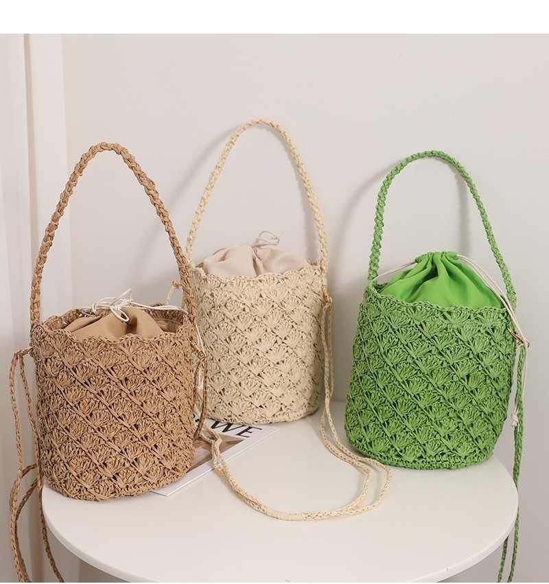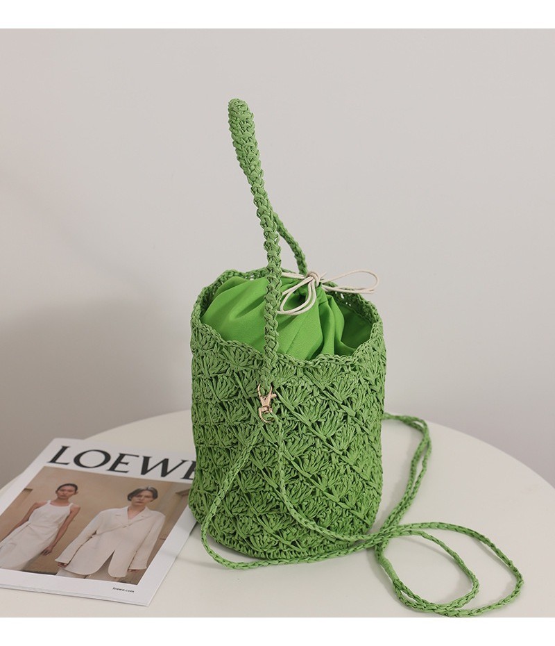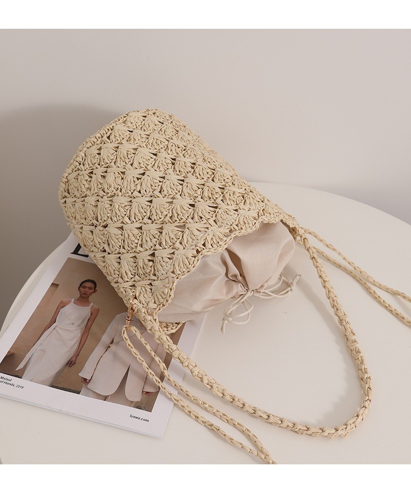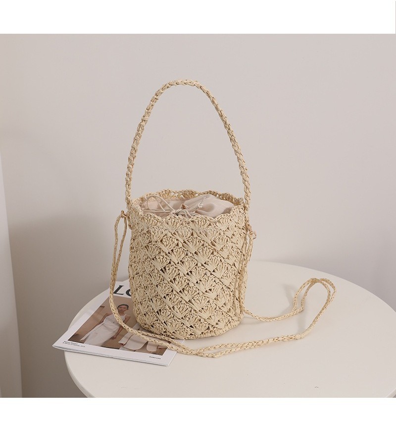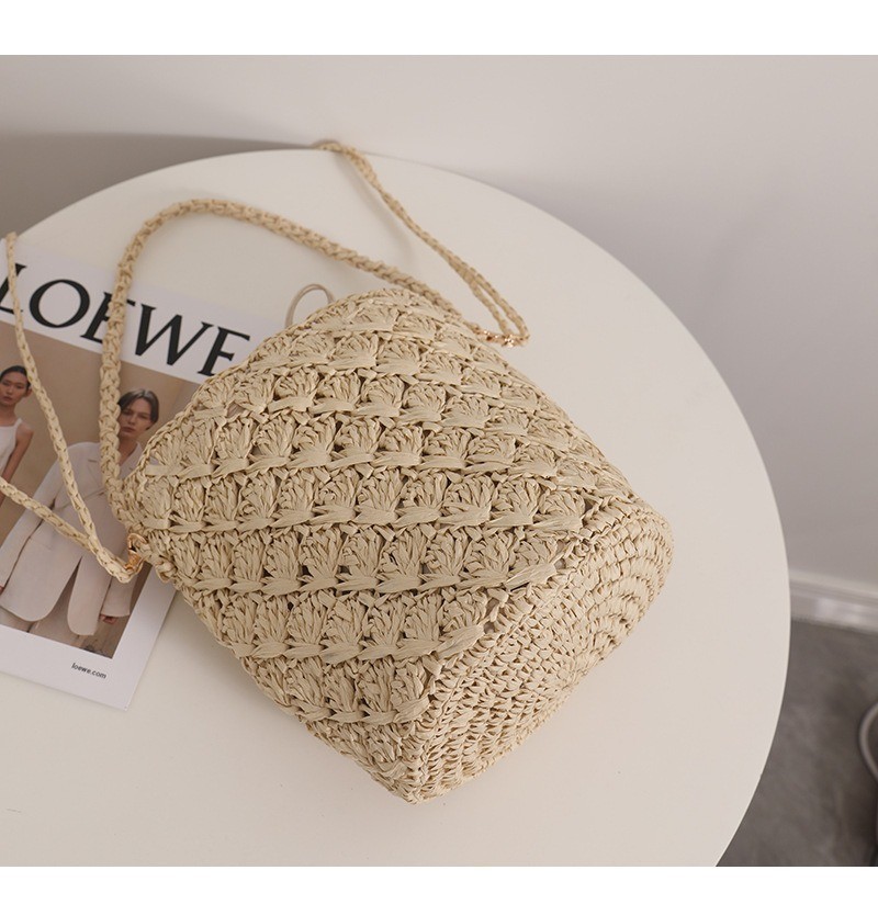 Ielgy Niche Design Straw Bucket Bag French Retro Crossbody Portable Woven Vacation Beach Bag