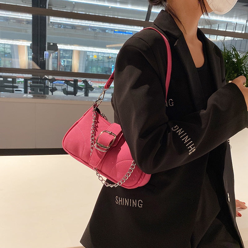 IELGY niche fashion solid color chain shoulder bag belt buckle decoration