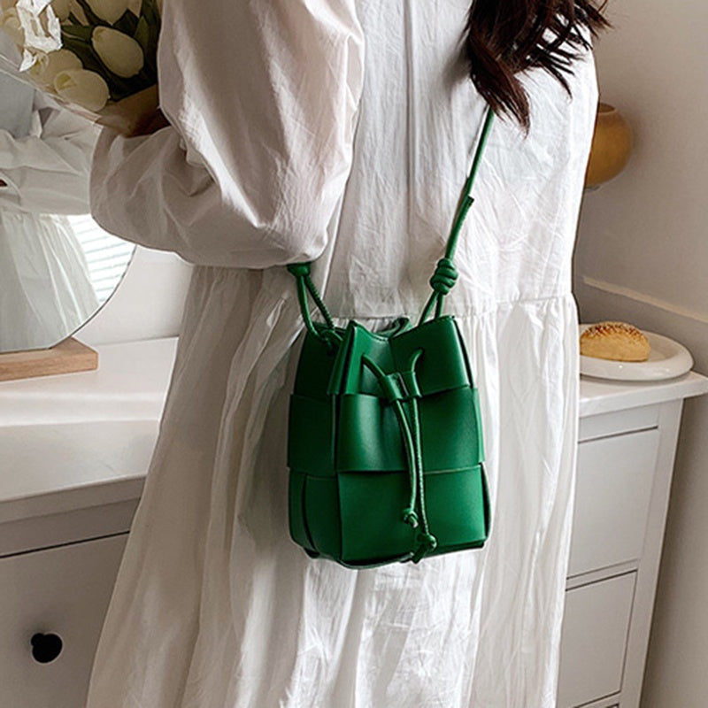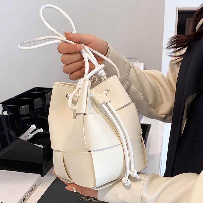 IELGY niche high-end hand-woven bucket-shaped messenger bag for women
