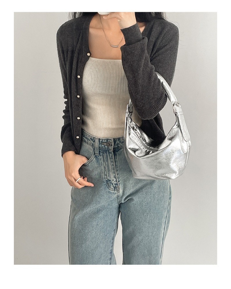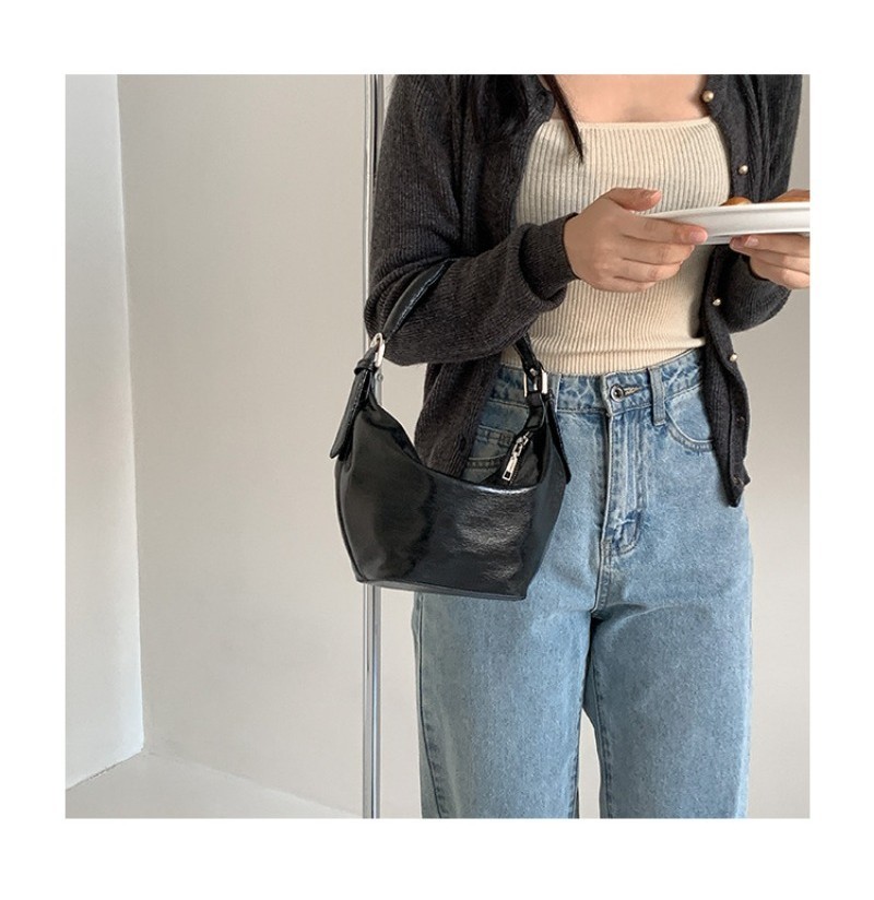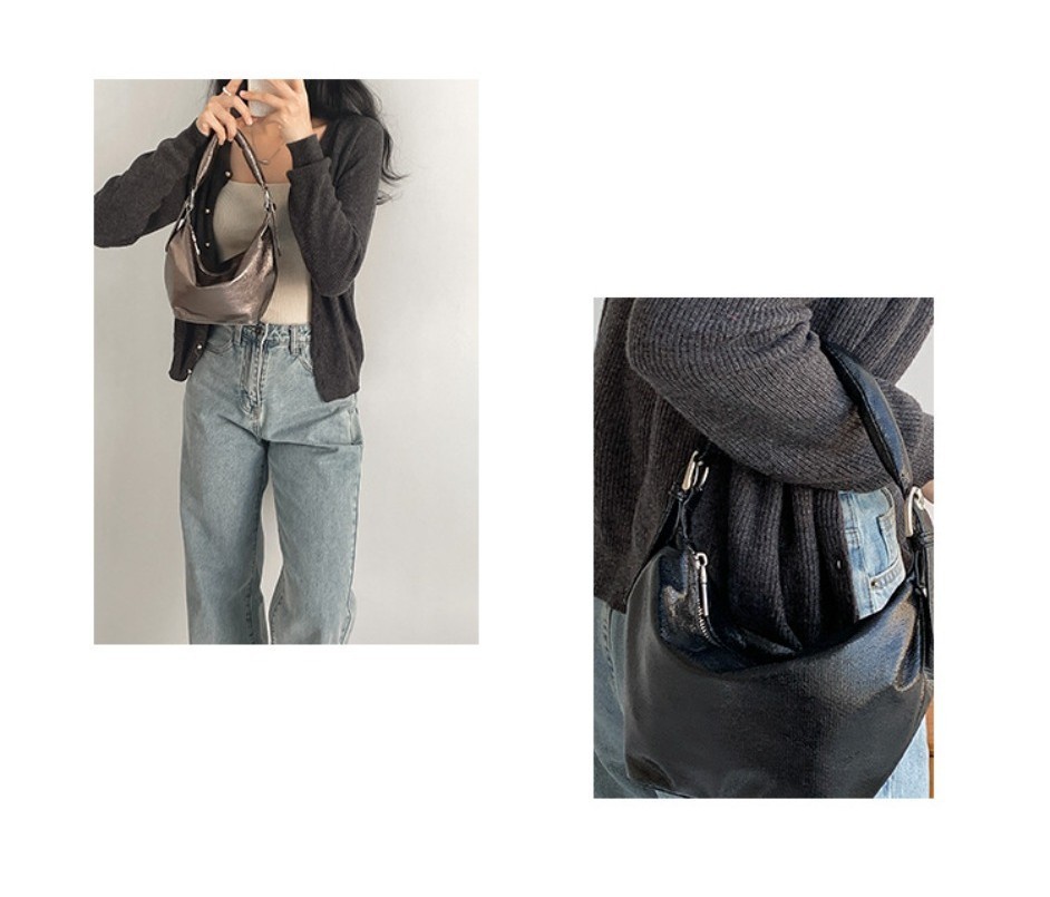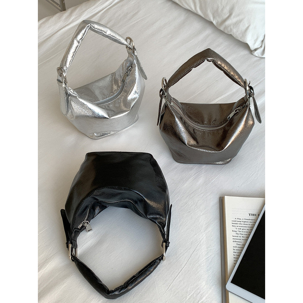 Ielgy Oil Wax Leather High-End Soft Leather One-Shoulder Commuter Underarm Bag Ladies All-Match Trendy Fashion Dumpling Bag