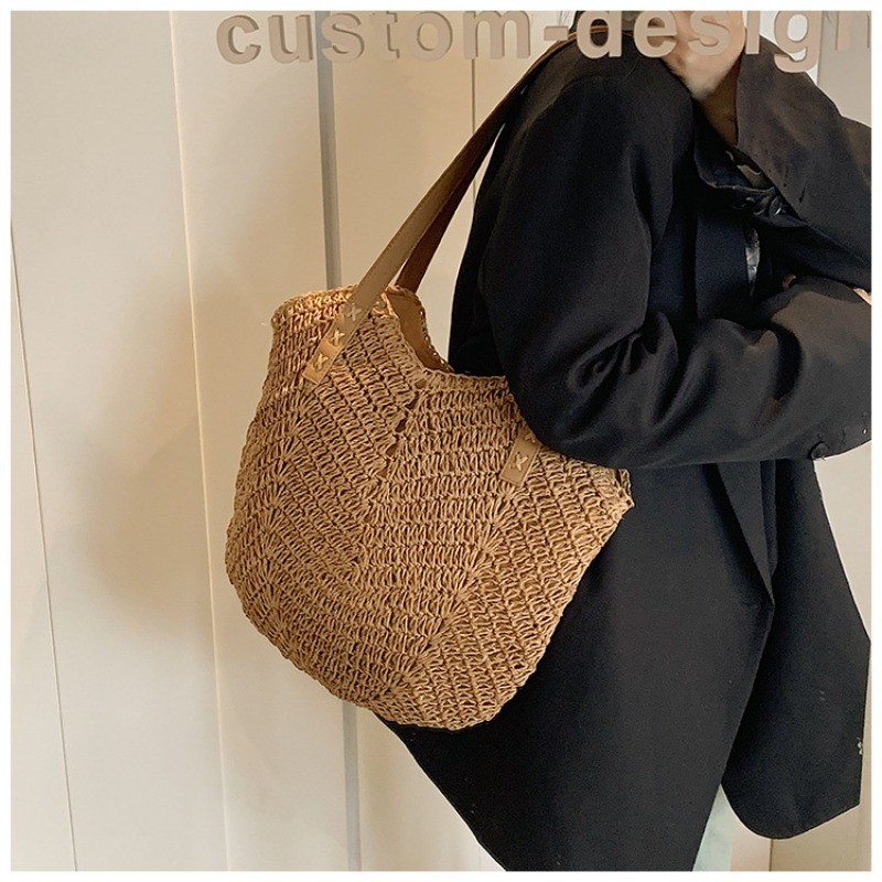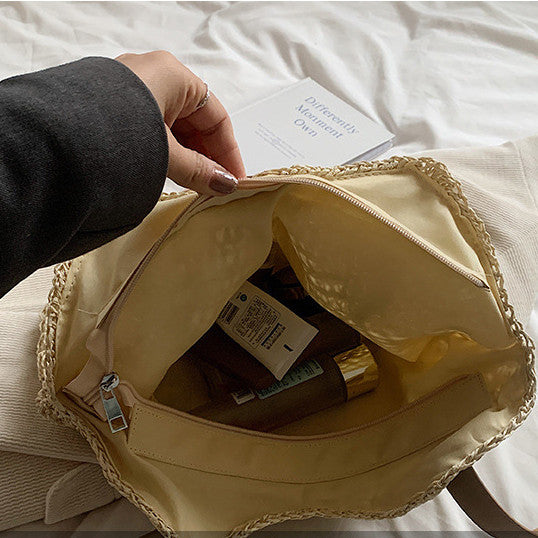 Ielgy One-Shoulder Messenger Large-Capacity Straw Woven Retro Woven Crossbody Bag