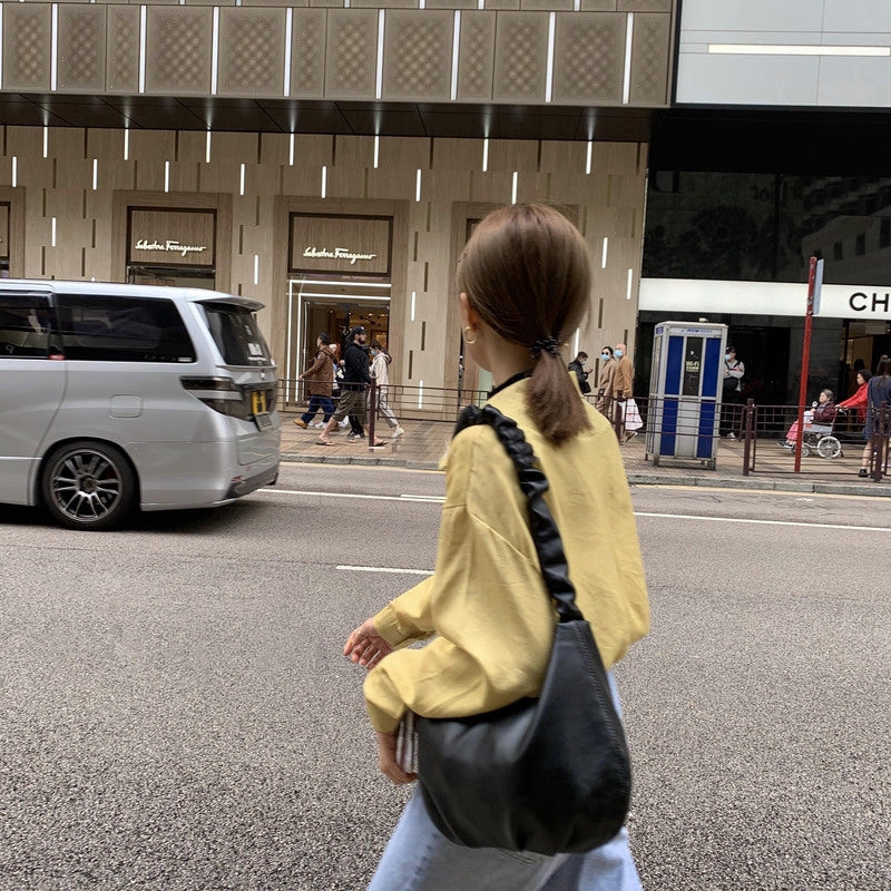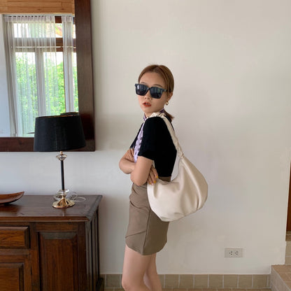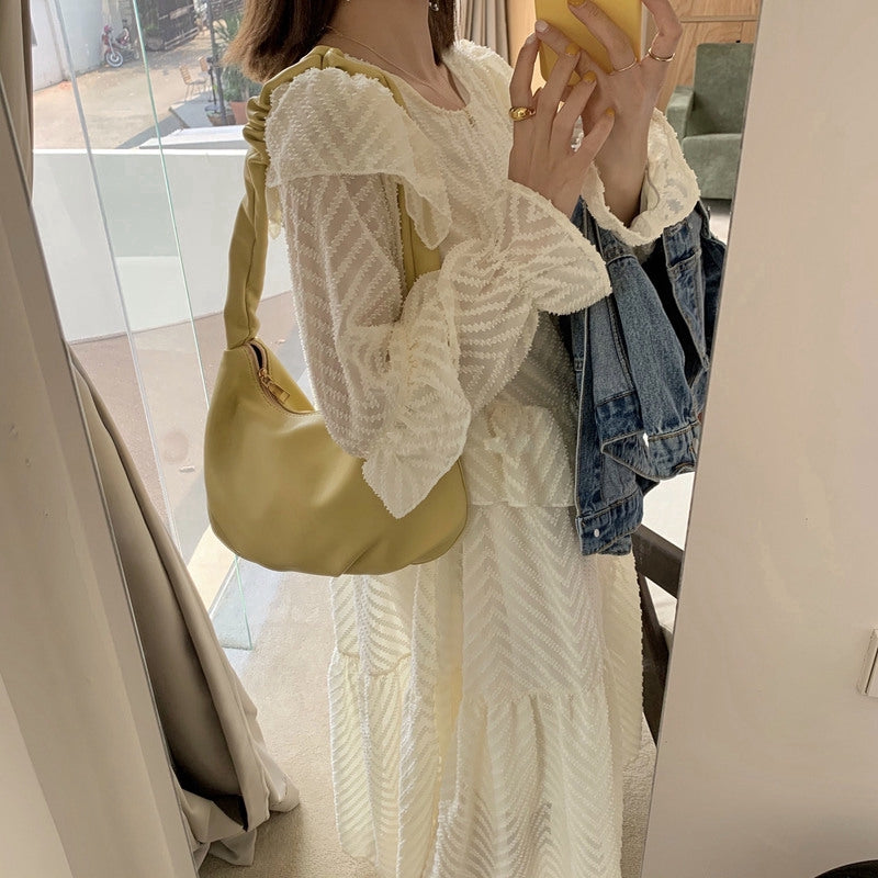 IELGY Pleated bag soft leather South Korean underarm bag fashion large size bag
