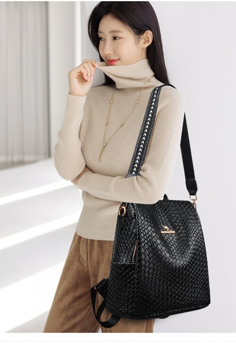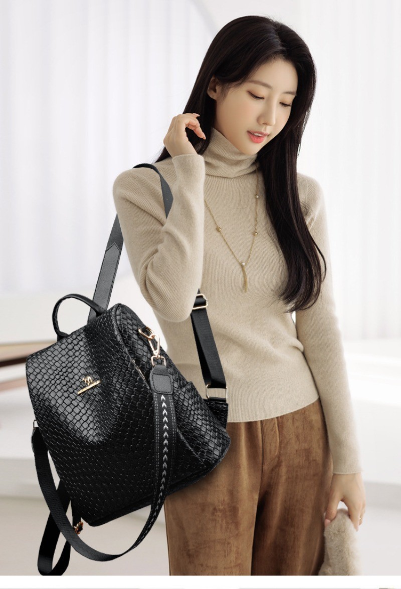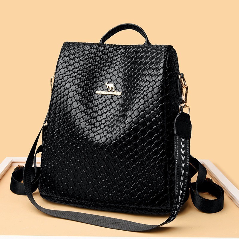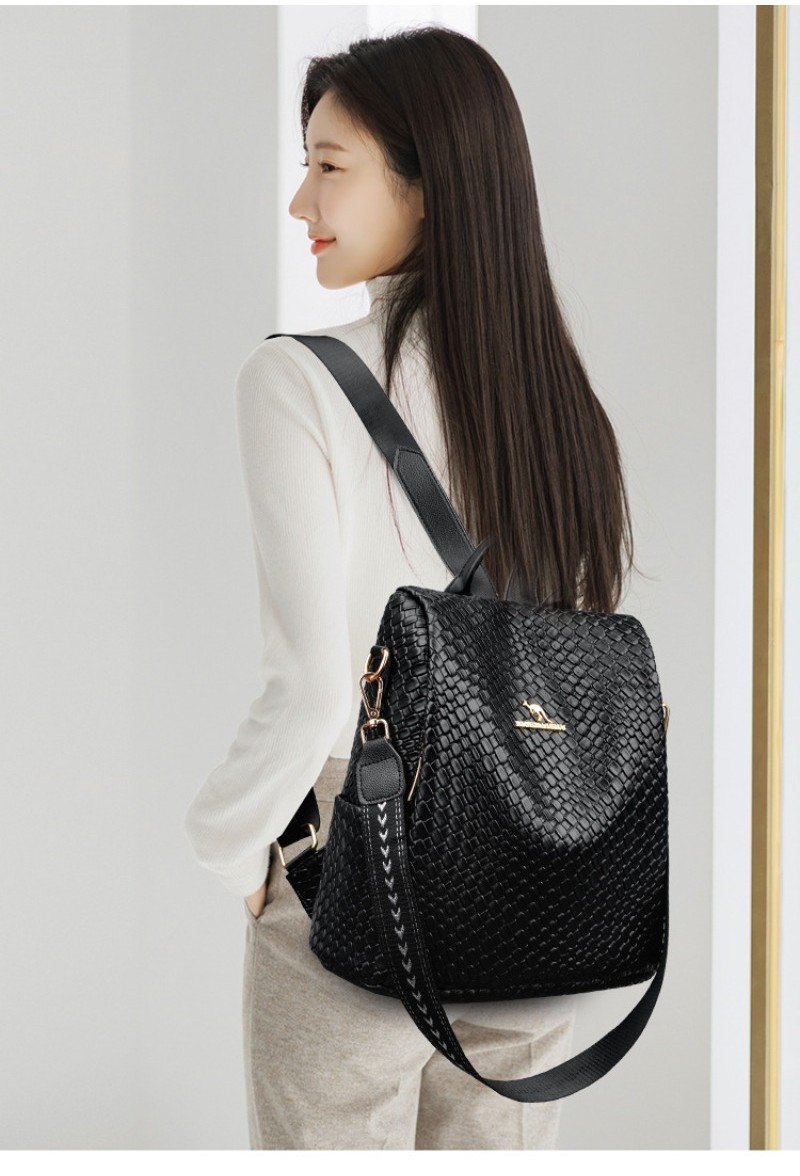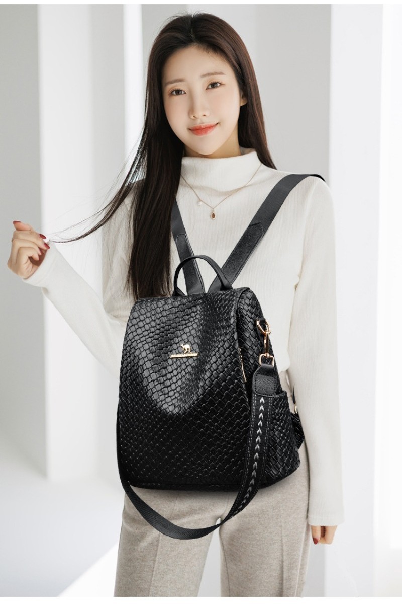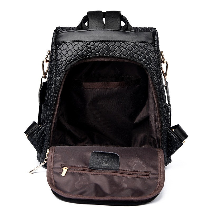 Ielgy Popular Woven Leather Backpack Multifunctional Anti-theft Student School Bag Travel Backpack