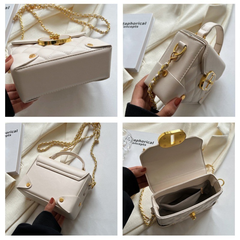 Ielgy Portable Box Bag Ladies Unique Texture Chain Shoulder Diagonal Bag