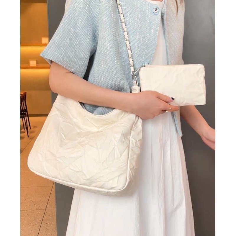 Ielgy Preppy Style Small Fresh Large-Capacity Soft Surface Tote Bag Commuter Shoulder Messenger Chain Bag