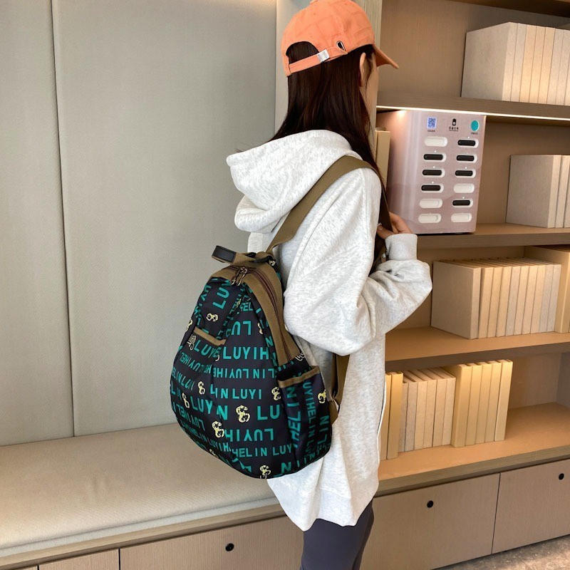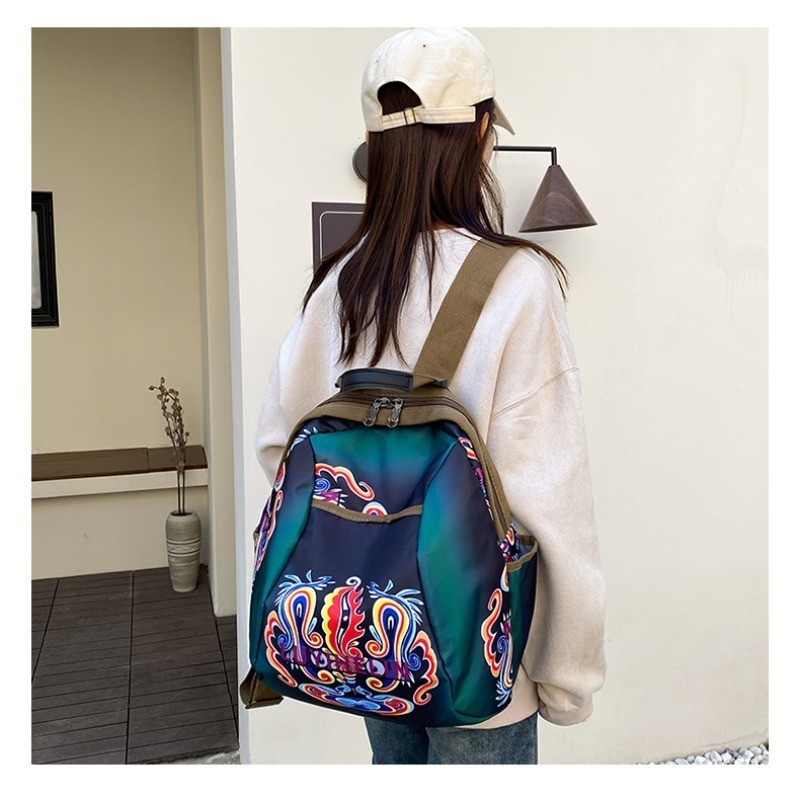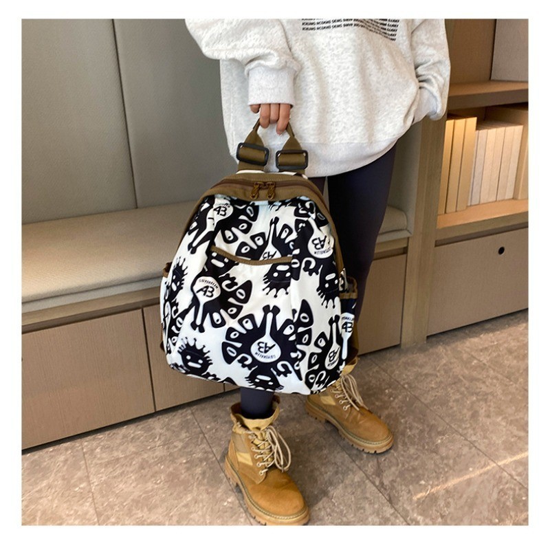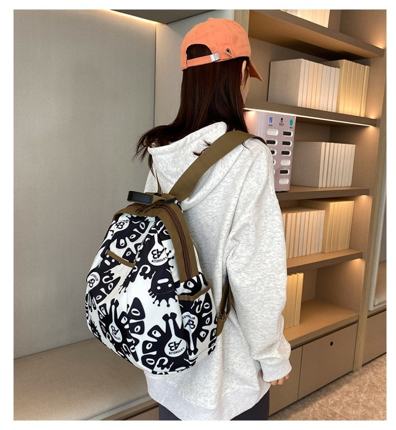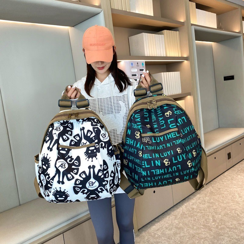 Ielgy Printed Ladies Backpack Oxford Cloth Large Capacity Backpack Harajuku Travel Design Sense School Bag
