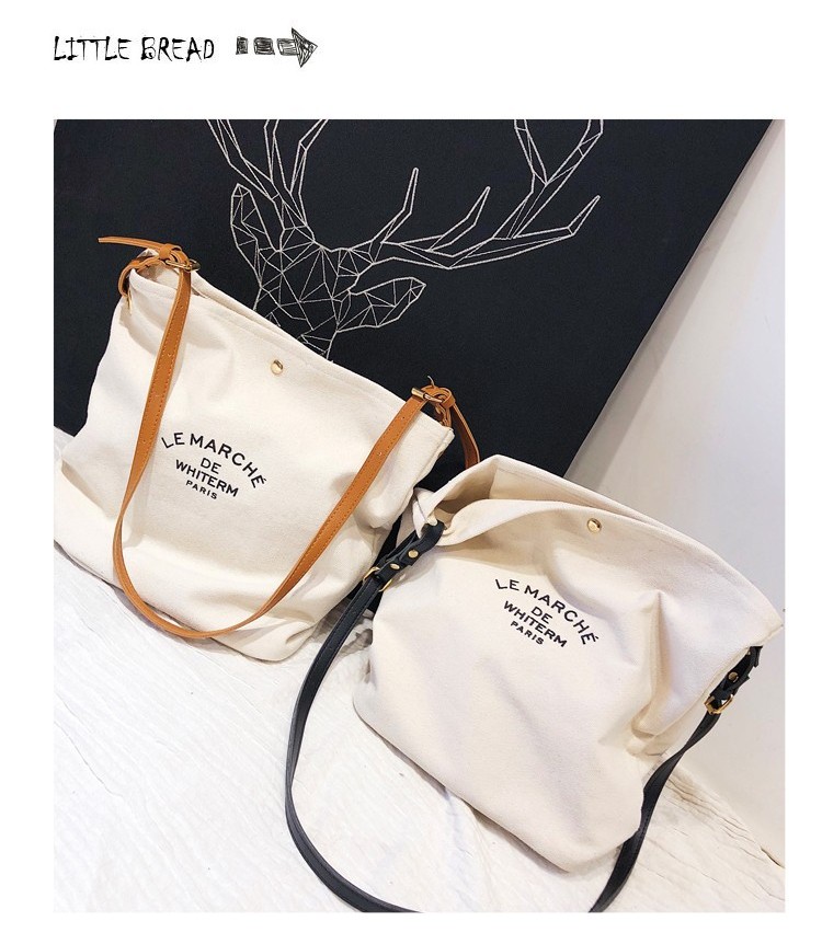 Ielgy Printed Messenger Bag Letter Printed Commuter Shoulder Fashion Bag Casual Shopping Child-Mother Canvas Bag Female Trendy