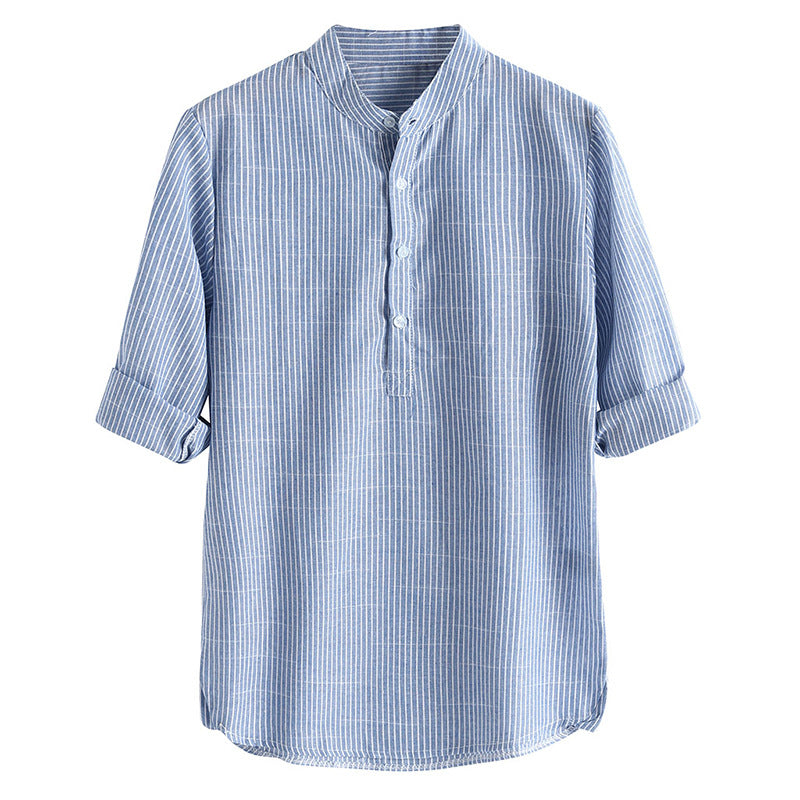 IELGY Printing Shirts Long sleeves Lapel Linen Black European and American Stripes Fashion Men's clothes