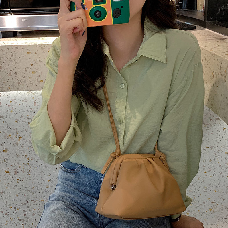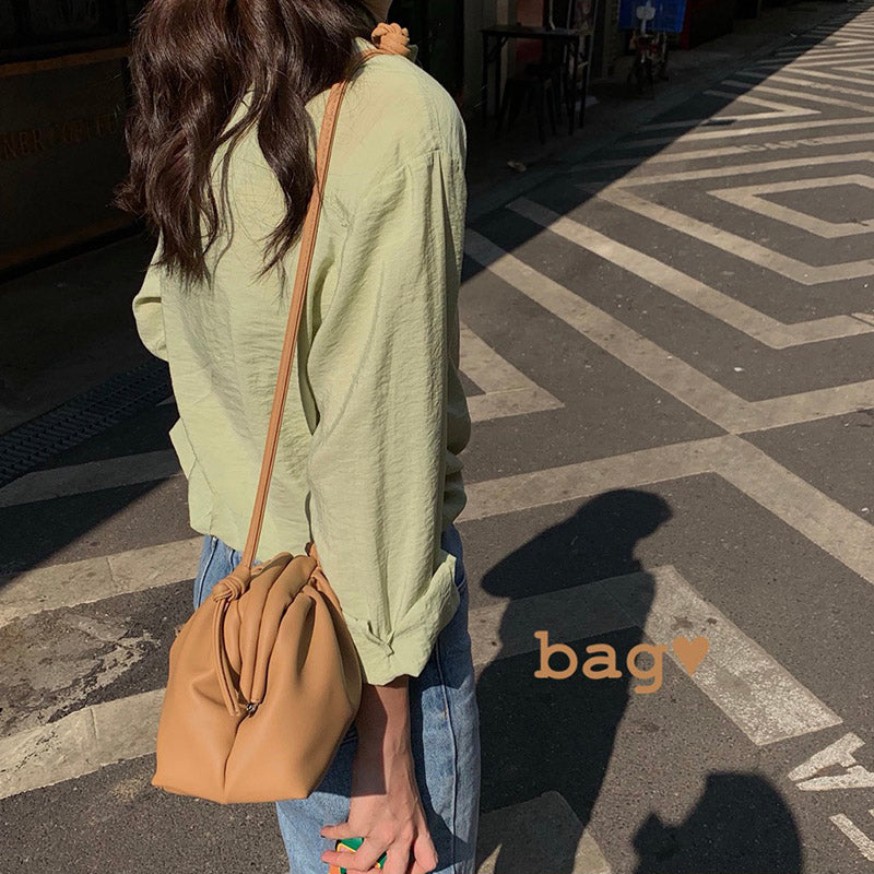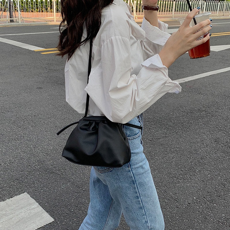 IELGY PU Woman's bag Diagonal Hand Soft skin White, clouds Black Dumpling One shoulder