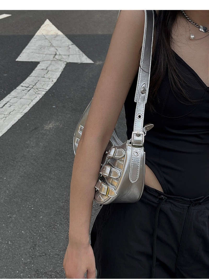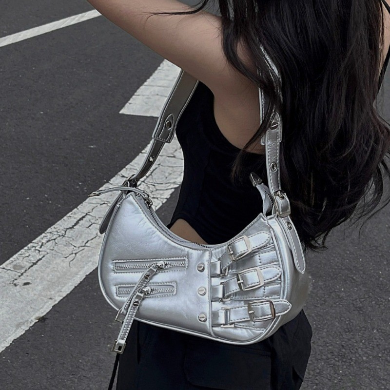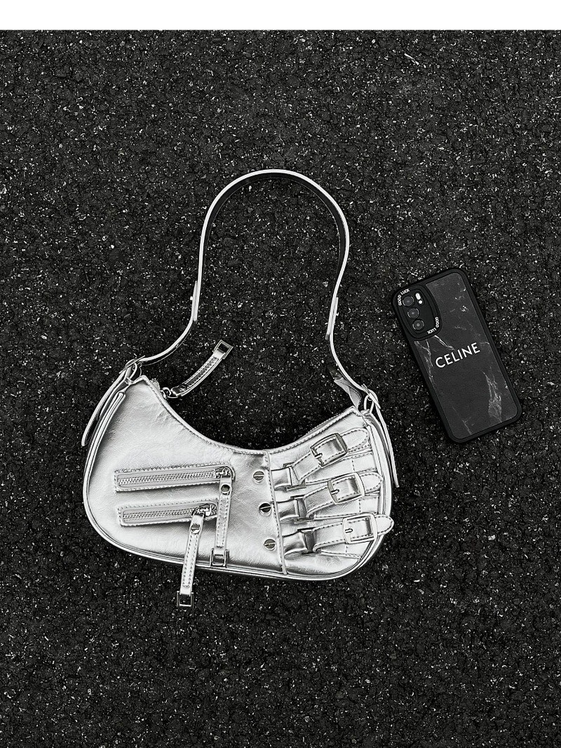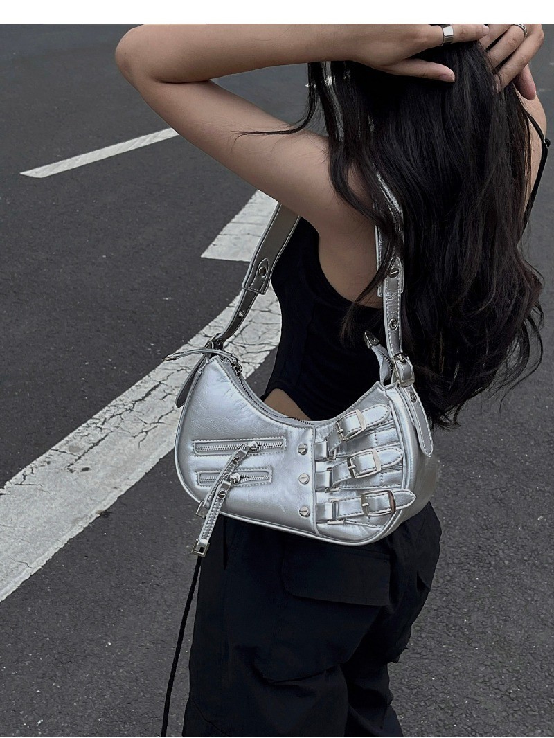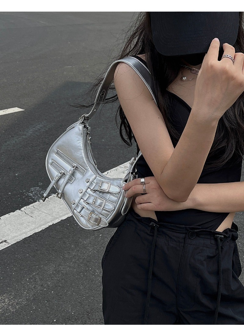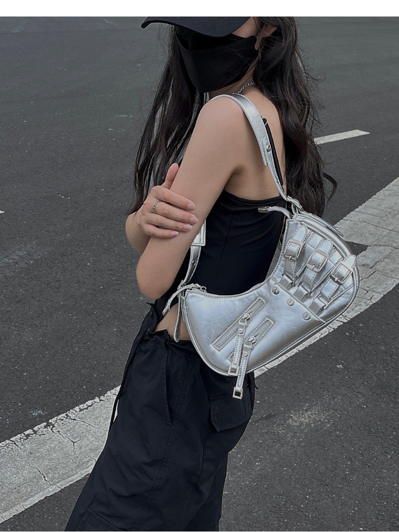 Ielgy Punk Sweet Cool Hot Girl Style Bag Motorcycle One-Shoulder Baguette Underarm Crescent Bag