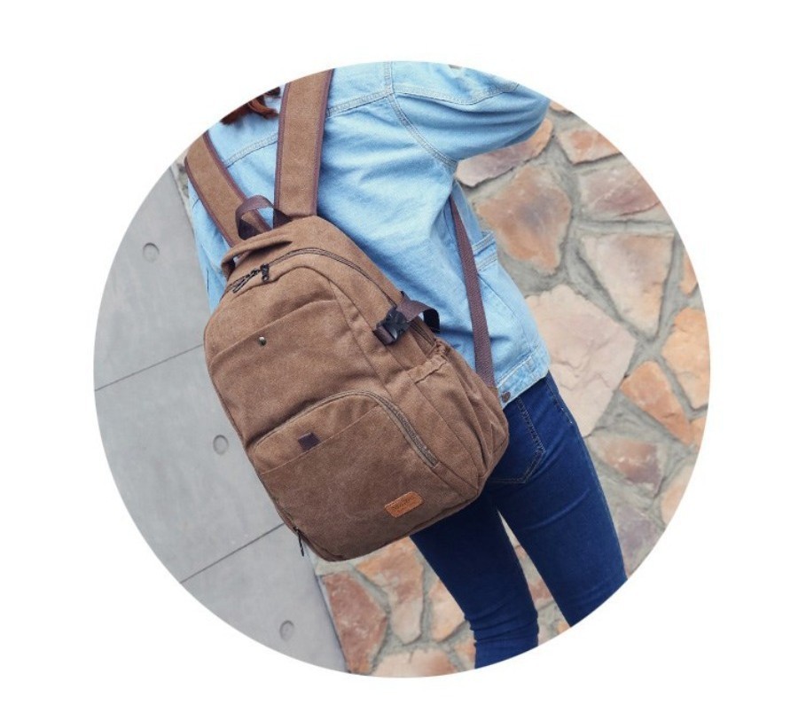 Ielgy Retro Canvas Backpack Ladies Wash Outdoor Backpack Student Simple Trendy Large-Capacity School Bag