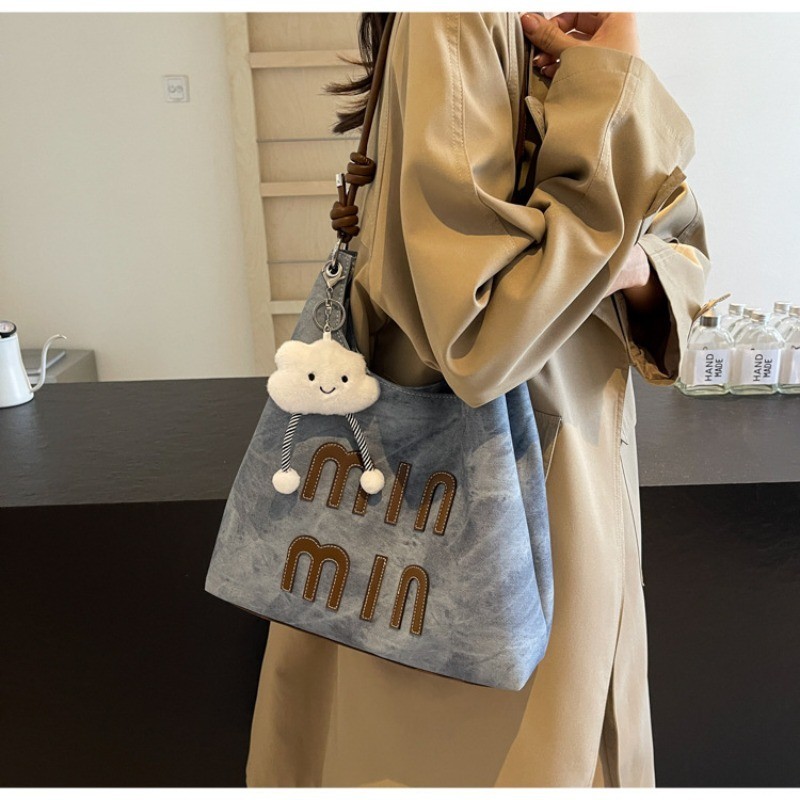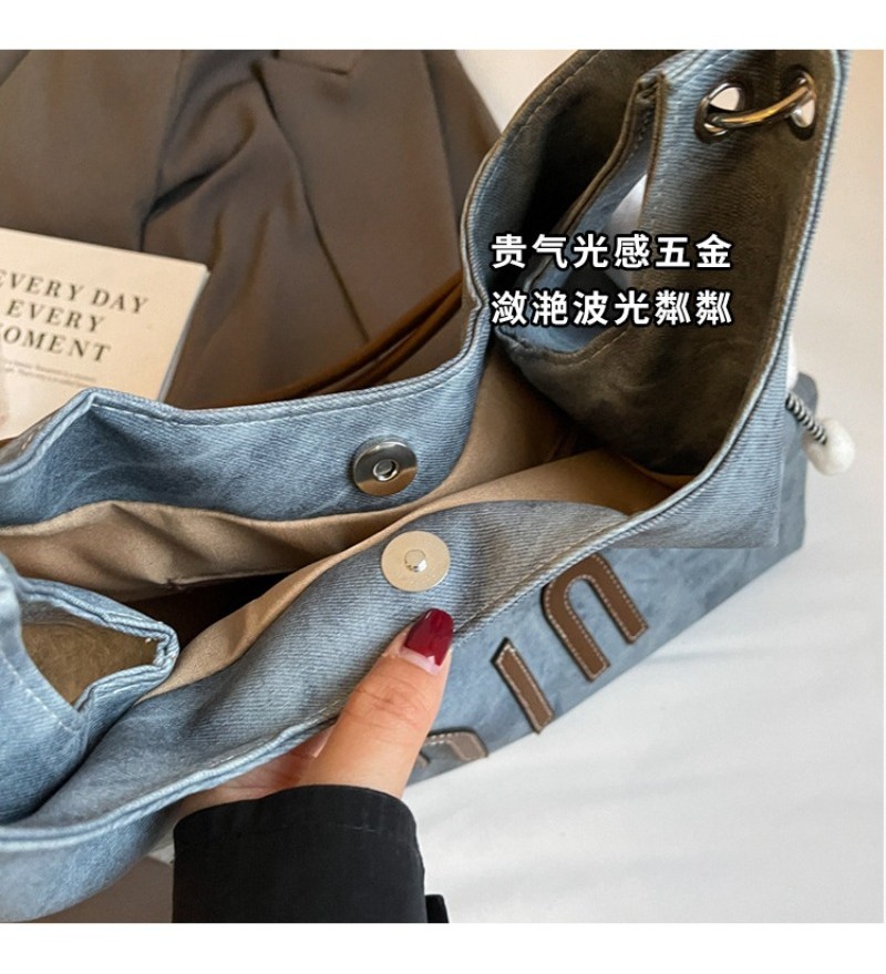 Ielgy Retro Korean Version Denim Underarm Bag Fashion Casual Portable Unique Texture Messenger Bag