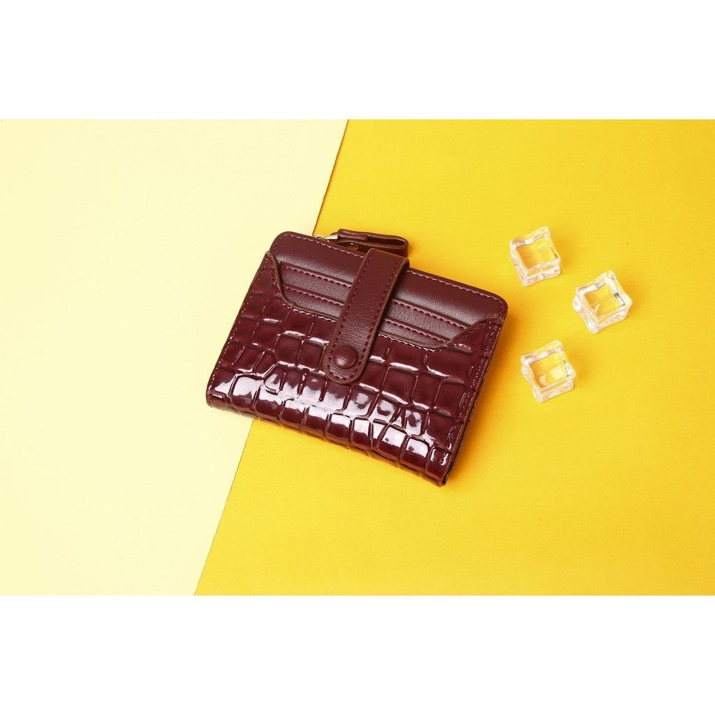 Ielgy Short Female Wallet High-End Multi-Card Slot Multi-Function Card Holder Solid Color Stone Pattern Coin Purse Wallet Bag