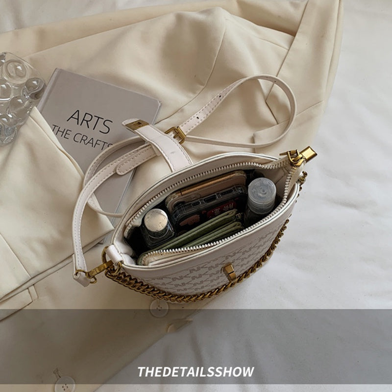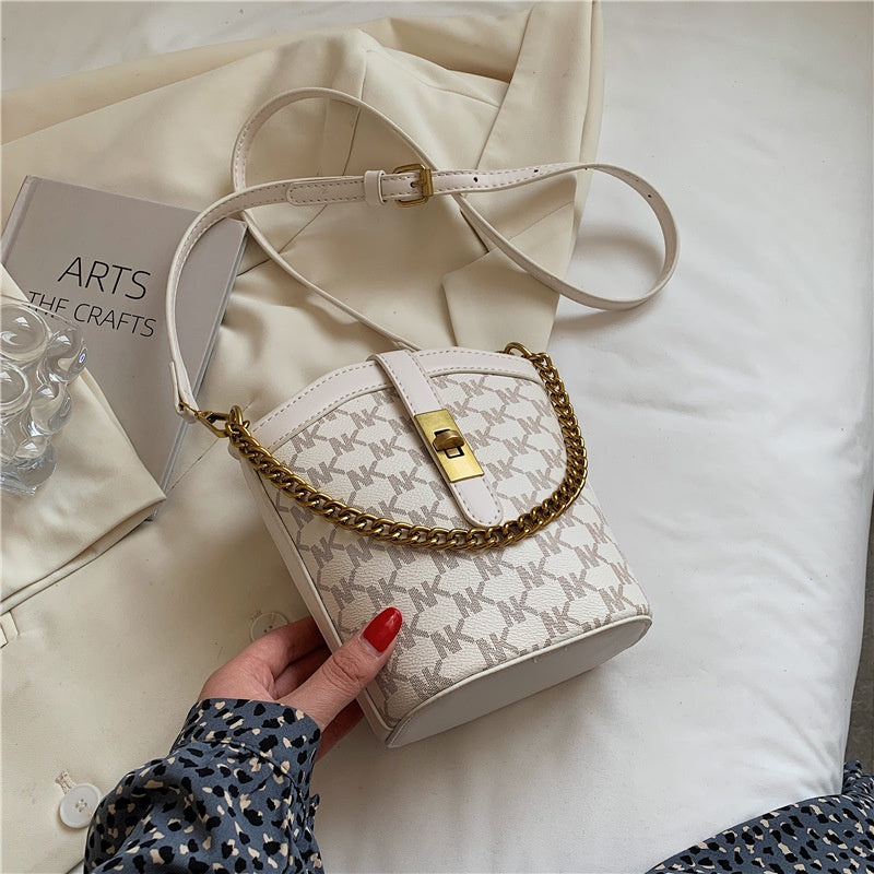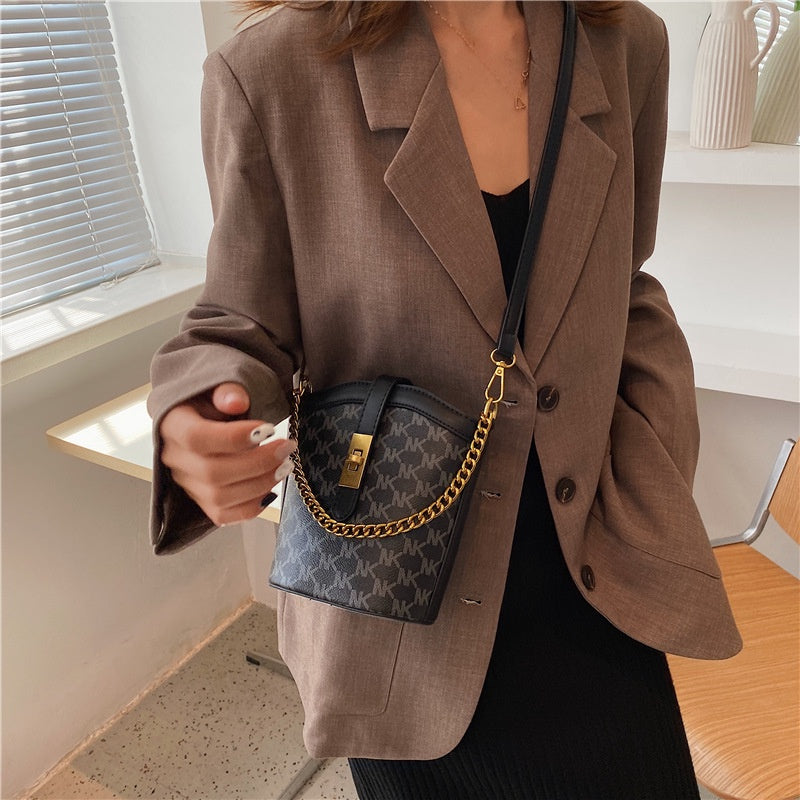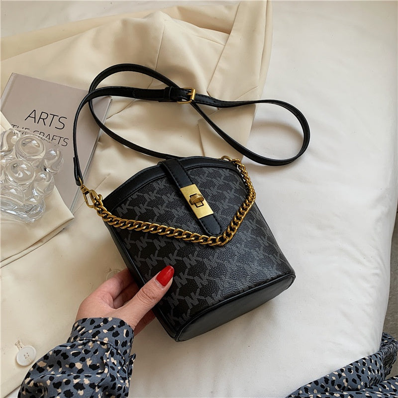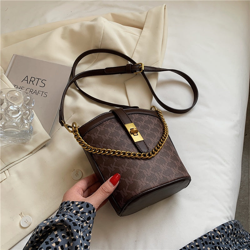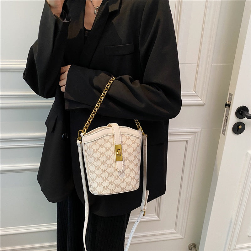 IELGY small pink retro niche design letter texture bucket messenger bag