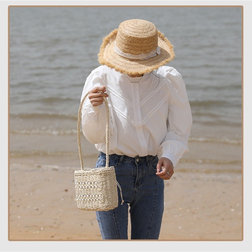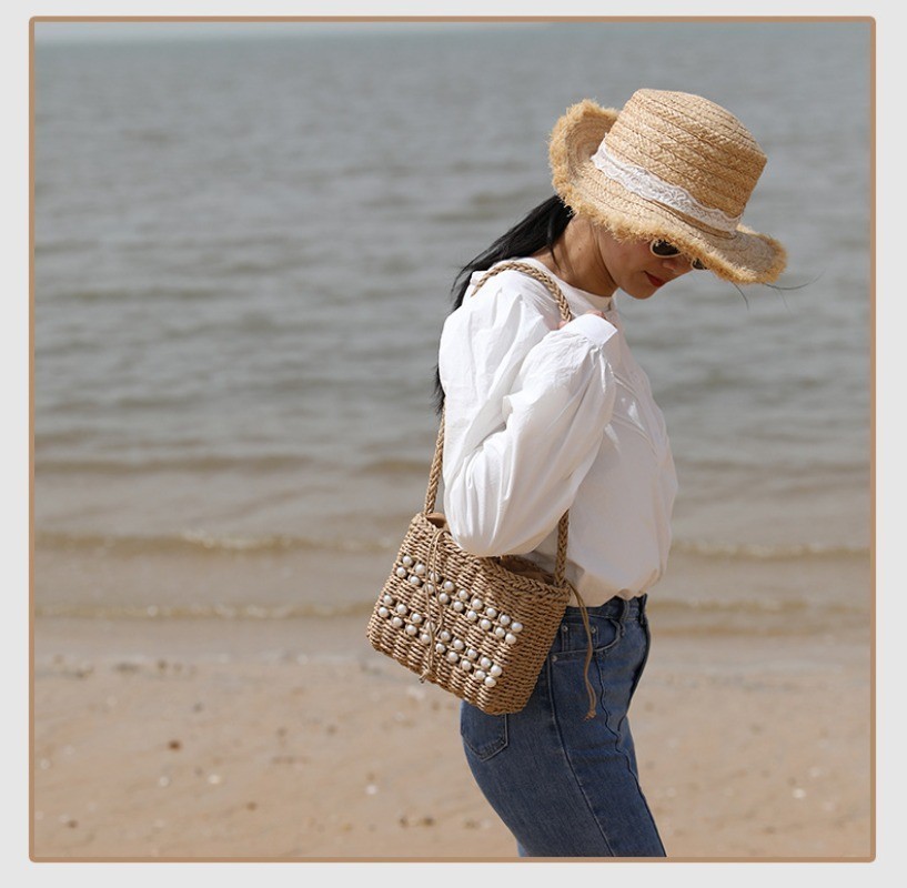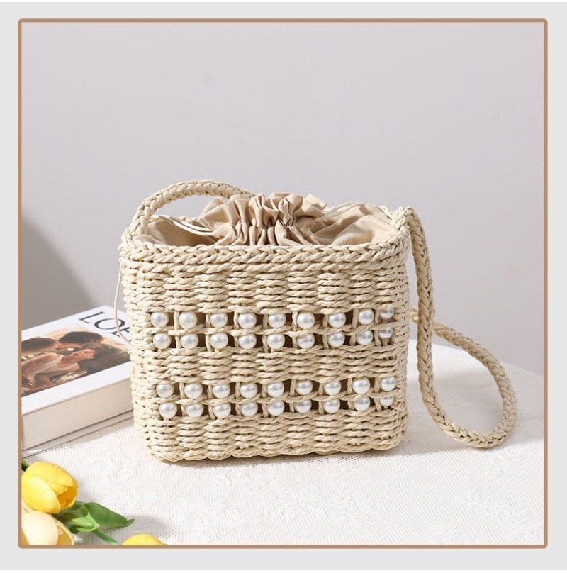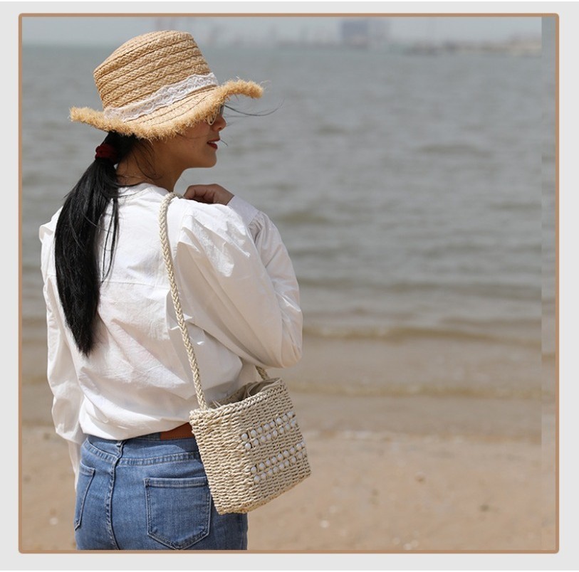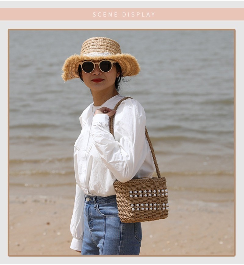 Ielgy Square Cross-Body Straw Woven Female Bag Mori Fashion Vacation Beach Bag Rattan Bag