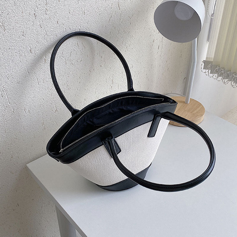 IELGY stitching bucket bags Women's bags zipper Fashion large capacity canvas ladies shoulder bags handbags fashion, trend