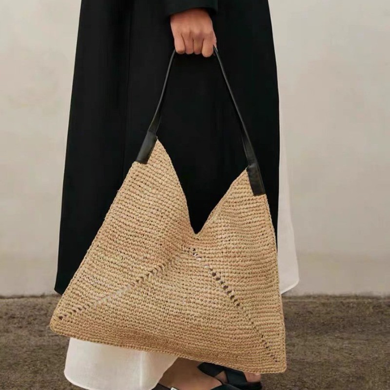 Ielgy Straw Bag Shoulder Handbag Woven Seaside Vacation Female Bag