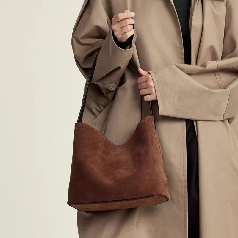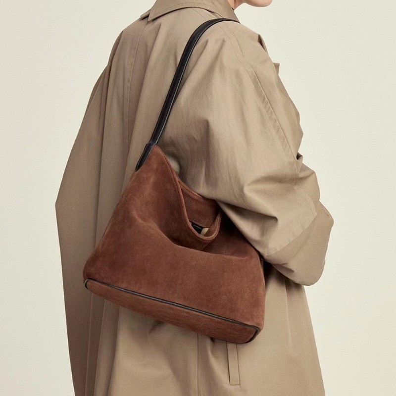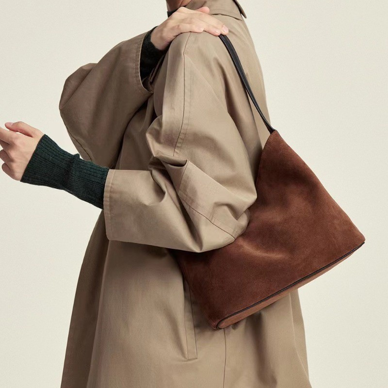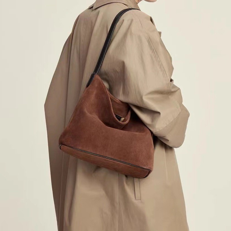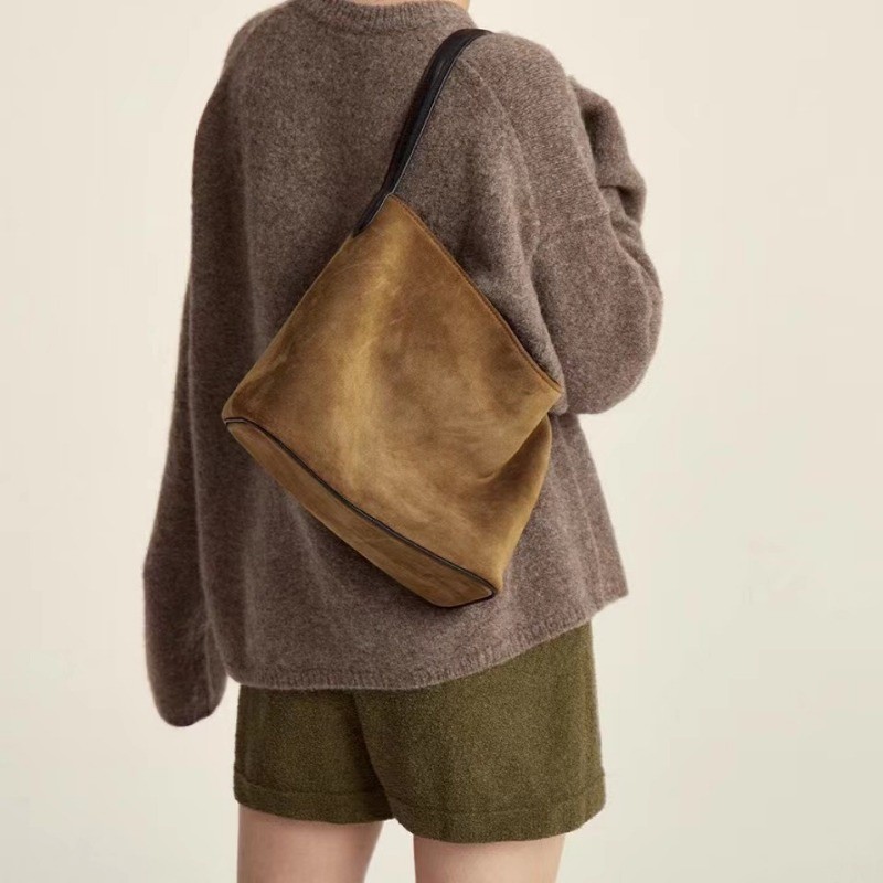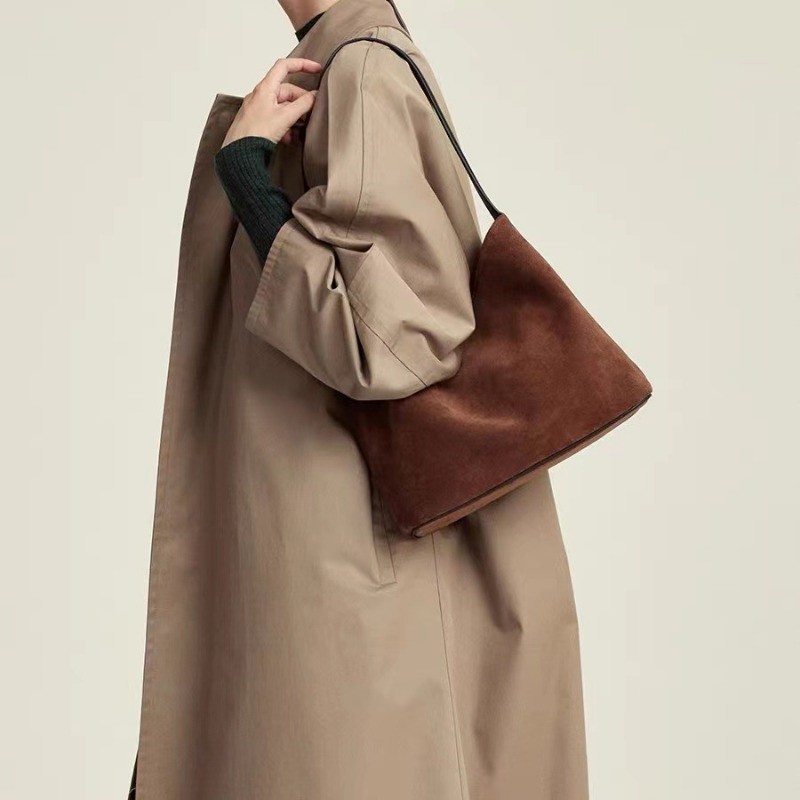 Ielgy Suede Leather Handbag Winter Fashion Old-fashioned Style High-End Lazy Style Tote Bag Retro Large-Capacity Shoulder Bag
