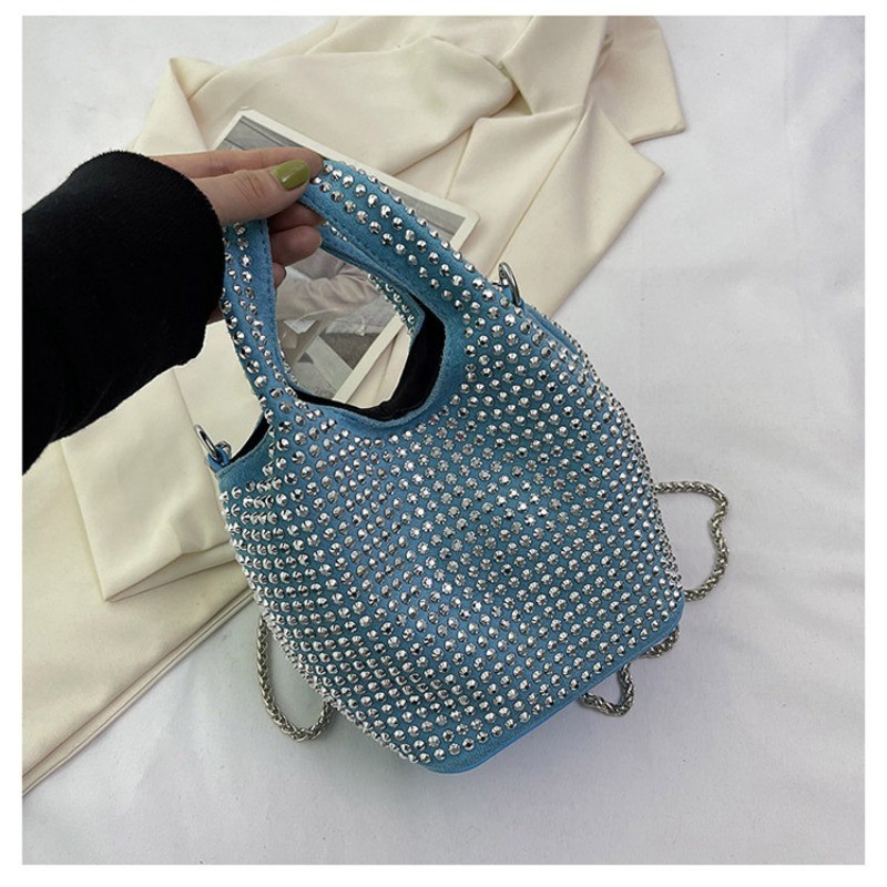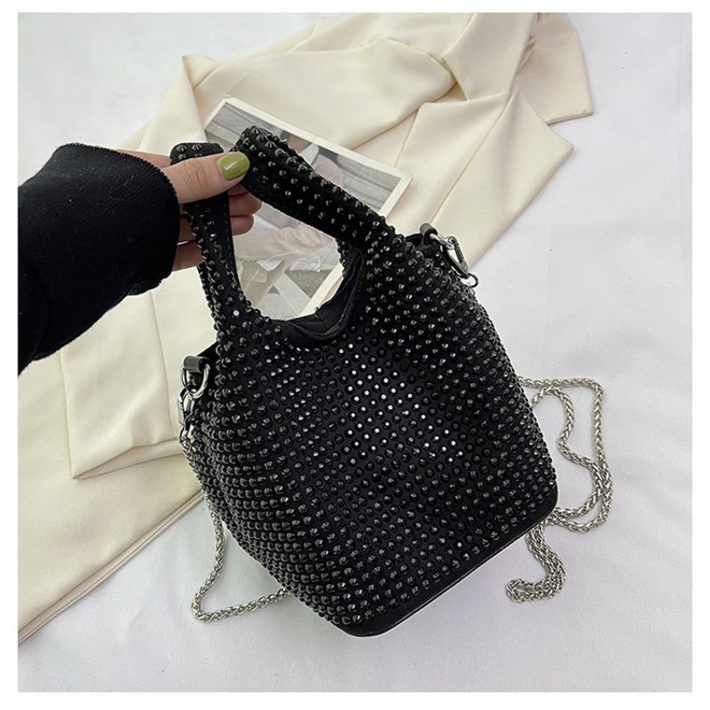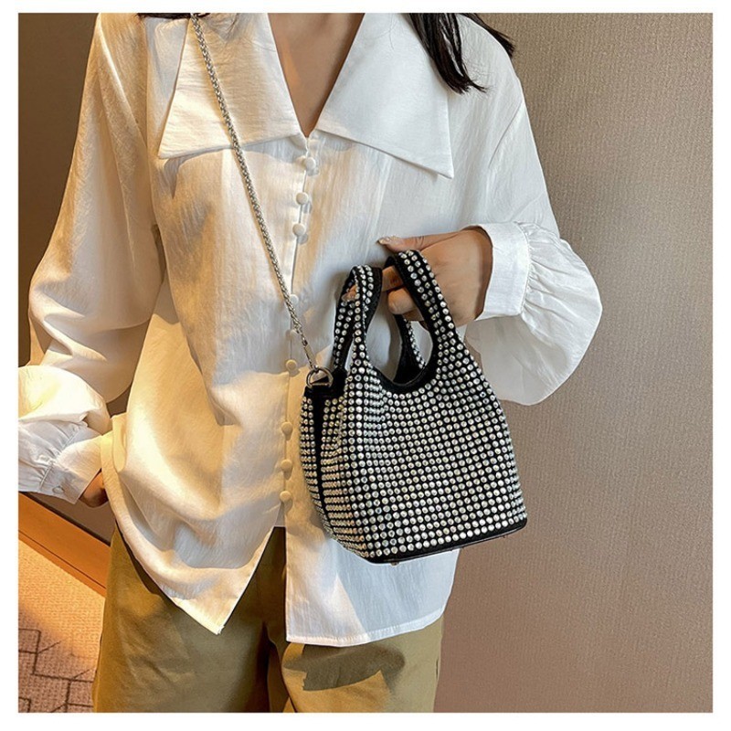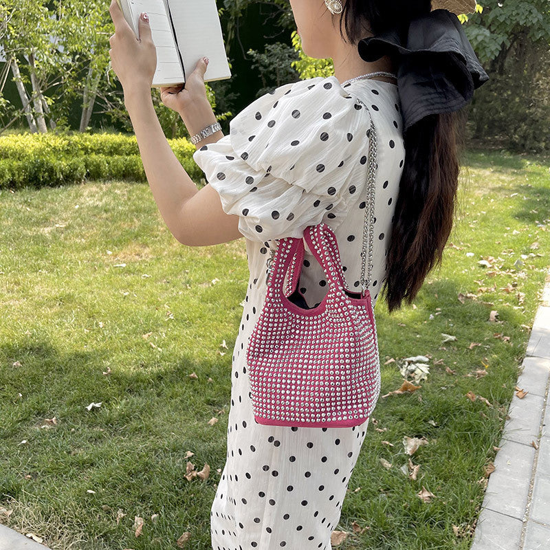 Ielgy Summer Chain Messenger Bag Bright Diamond Portable Bucket Bag
