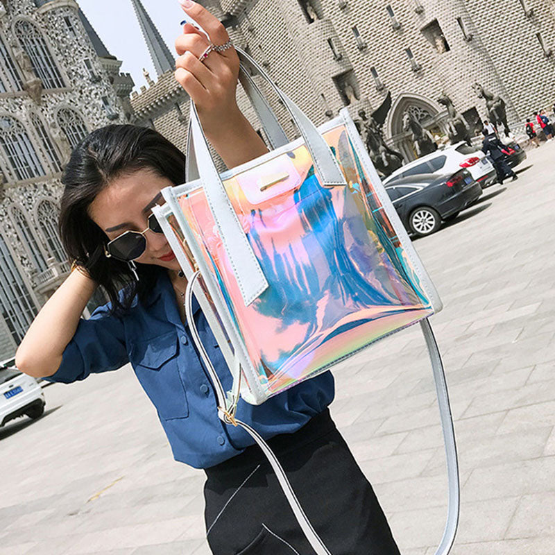 IELGY Summer Korean version jelly bag picture bag trendy transparent bag handbag ins style diagonal shoulder bag shoulder strap design