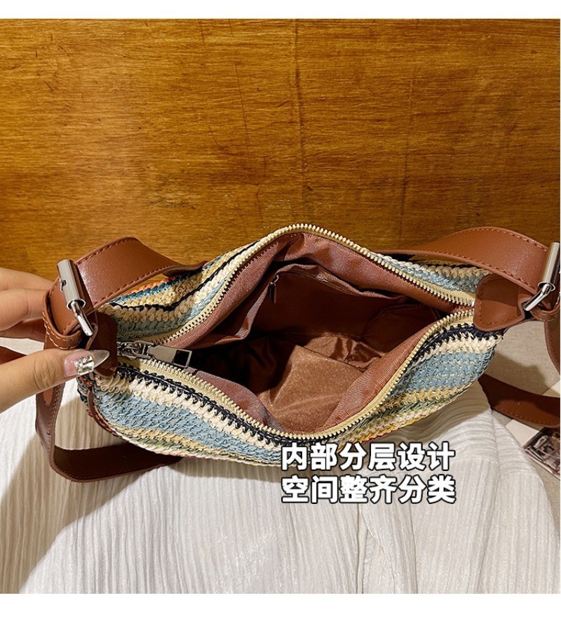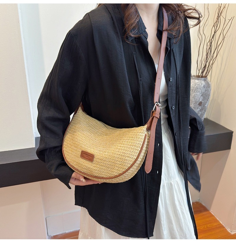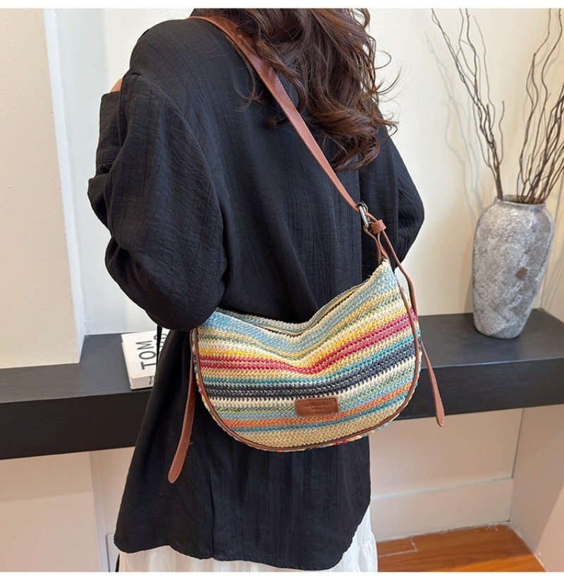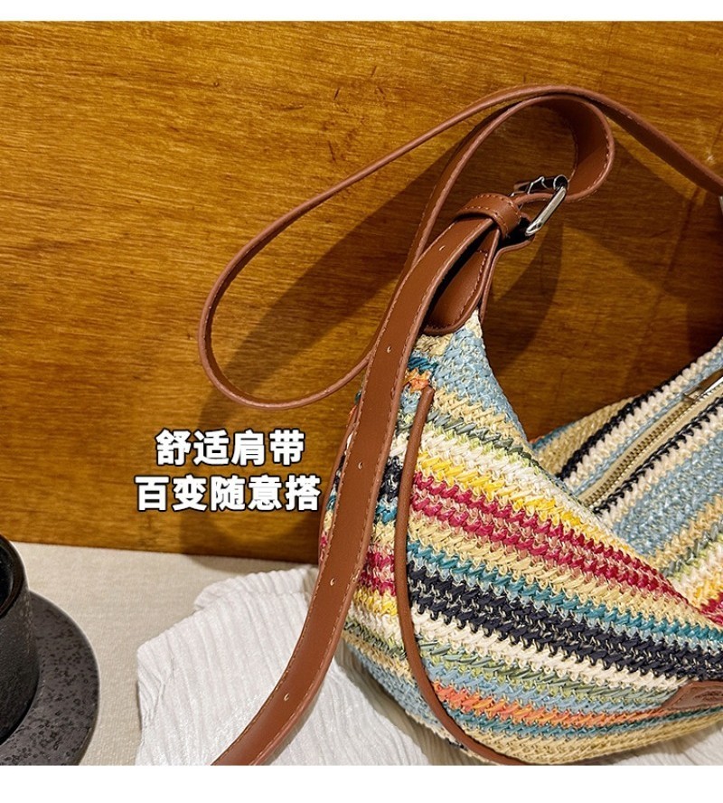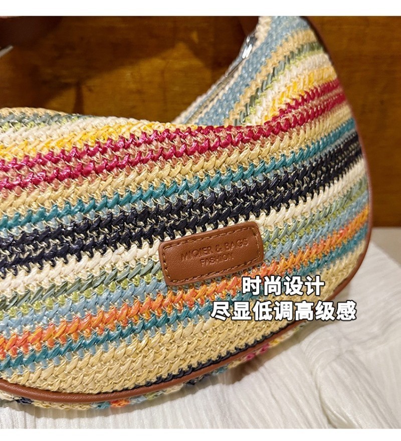 Ielgy Summer Niche Contrast Color Dumpling Bag Fashion One-Shoulder Messenger Bag Casual Woven Women's Bag