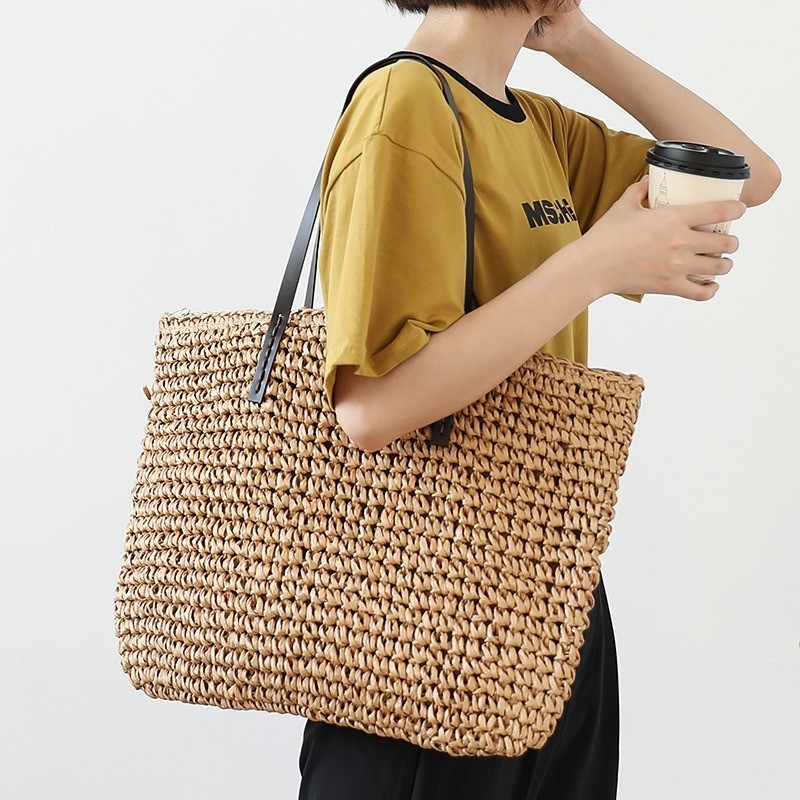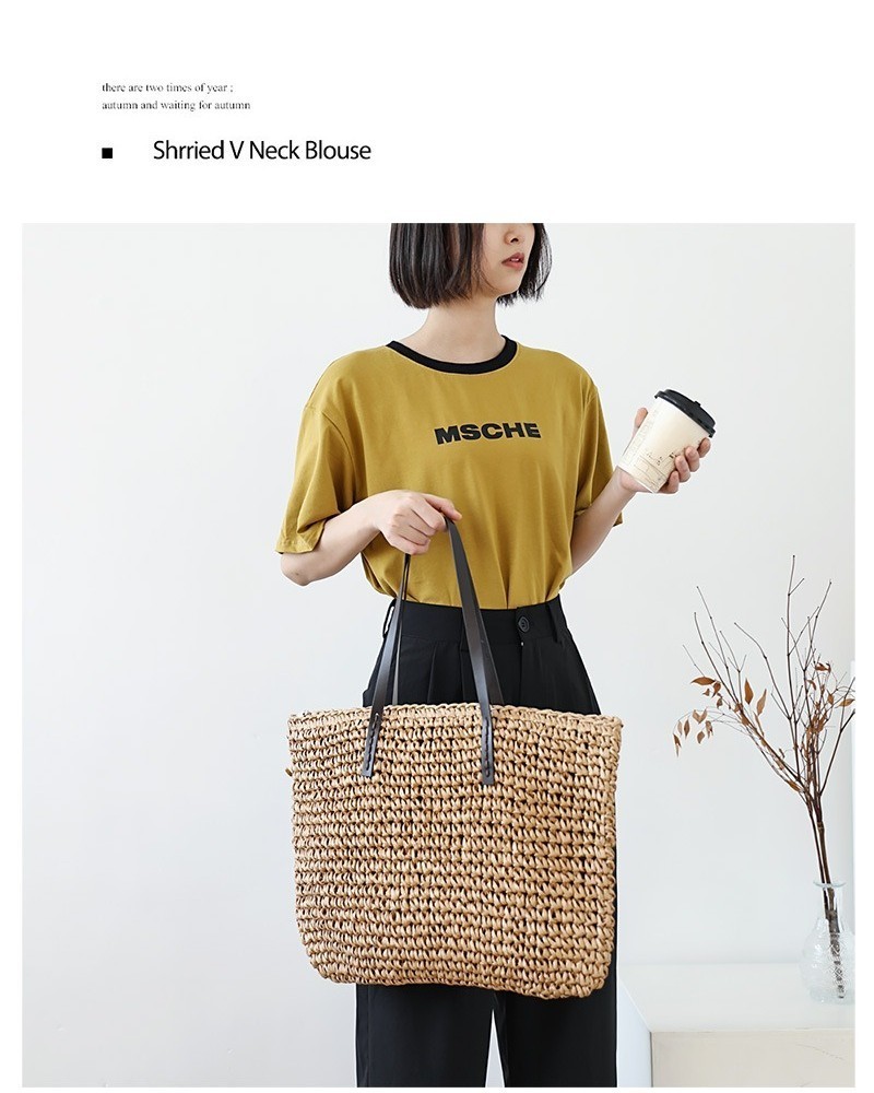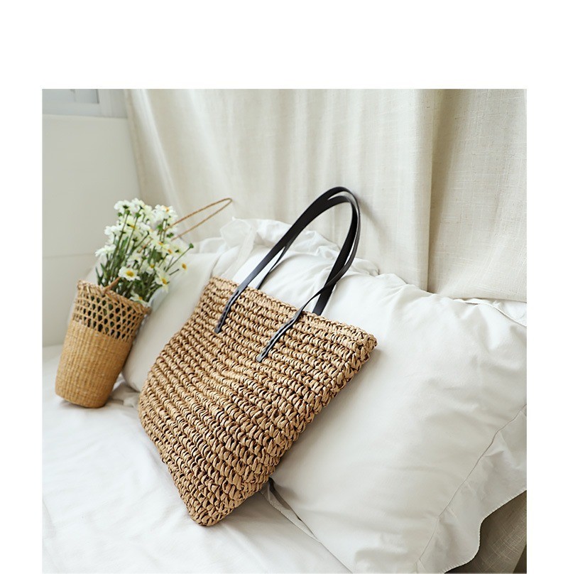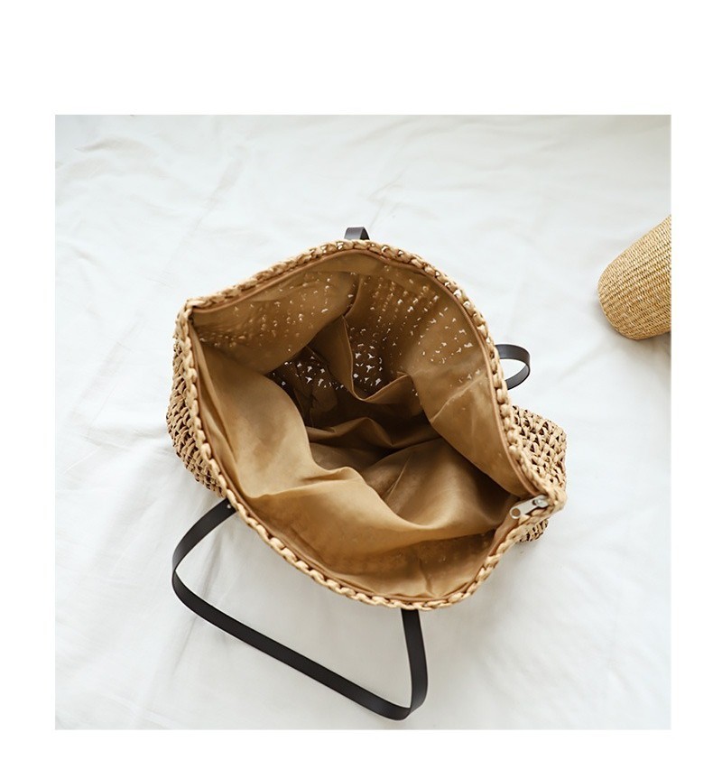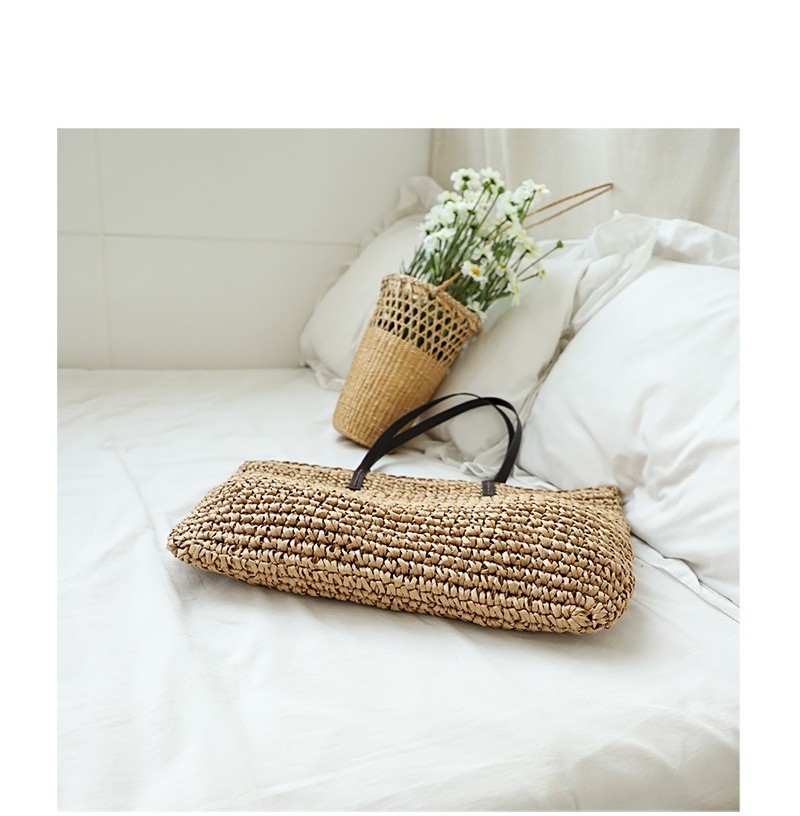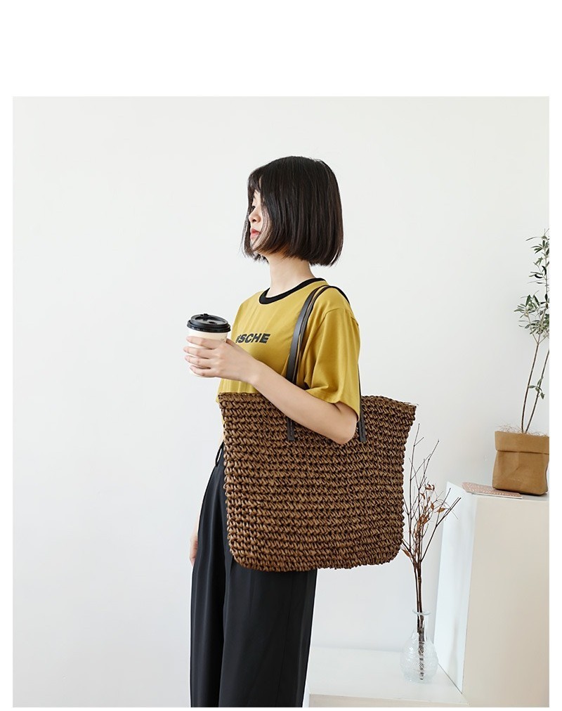 Ielgy Summer Pastoral Style Woven Beach Bag Leisure Seaside Vacation Portable Female Bag Large Capacity Straw Woven