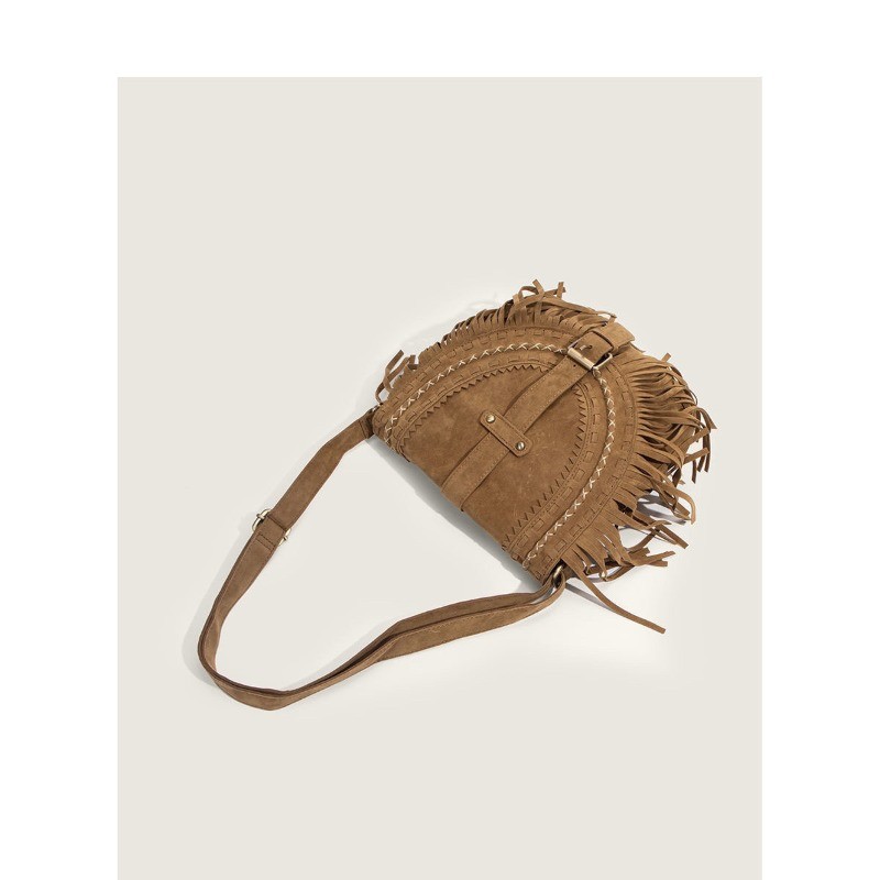 Ielgy Tassel Bag Niche Retro Saddle Bag Fashion One-Shoulder Leisure Travel Messenger Bag