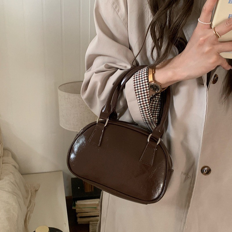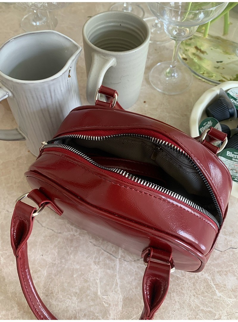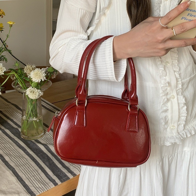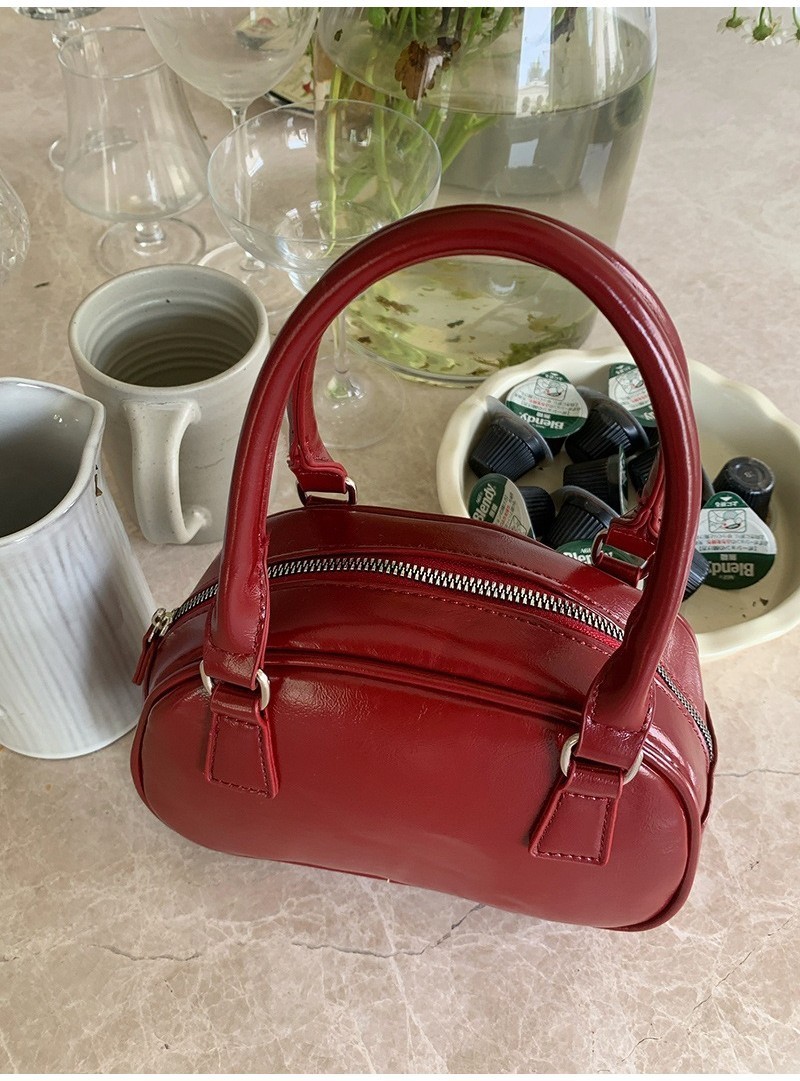 Ielgy Trendy Portable Bowling Bag All-Match Cross-Body Retro Red Small Square Bag