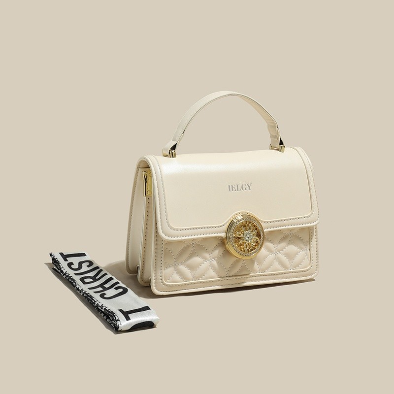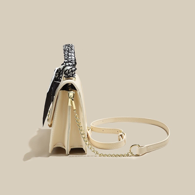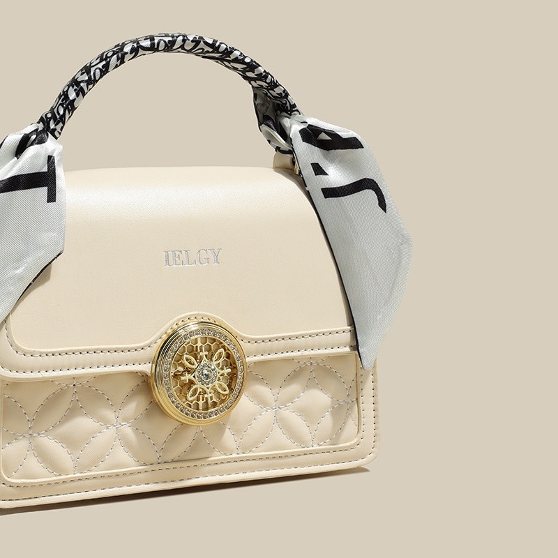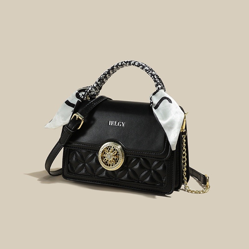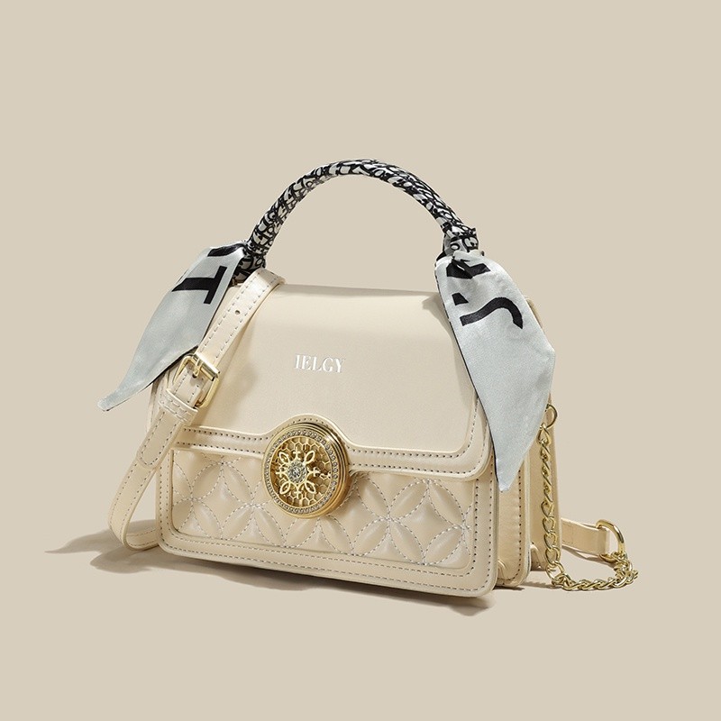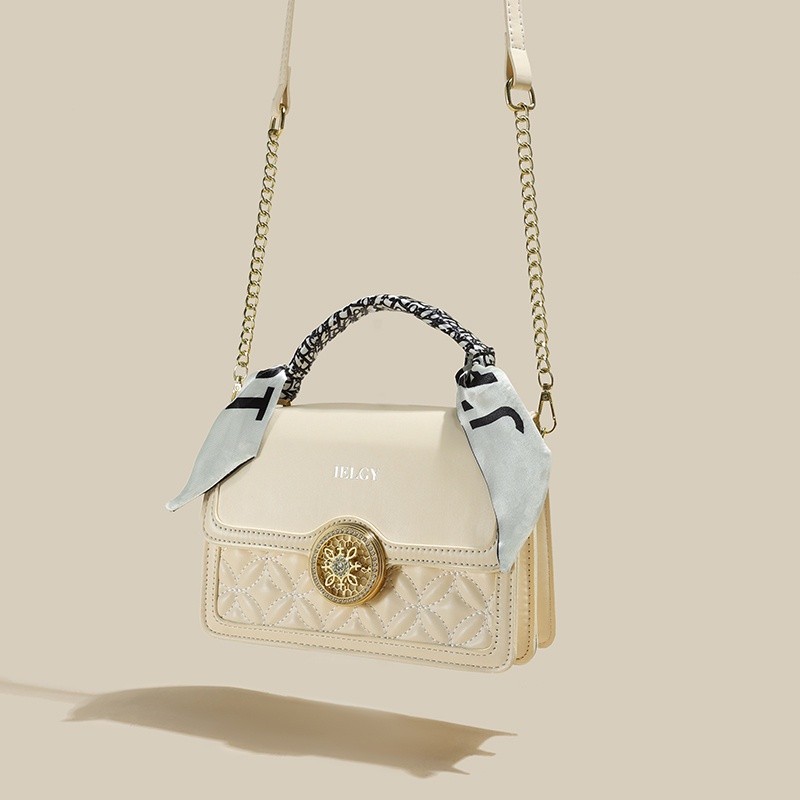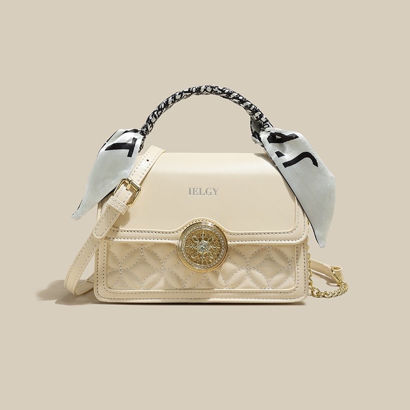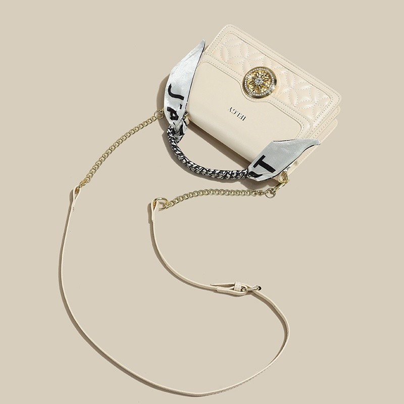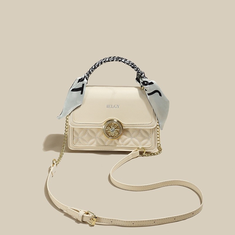 IELGY Versatile Crossbody Bag with Chain Shoulder Strap, Stylish Diamond Grid Pattern, Fashionable Small Shoulder Bag with Silk Scarf Decoration for Women