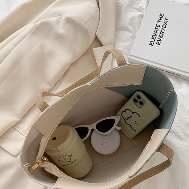 IELGY Women's bag casual large capacity black portable one shoulder all-match simple tote fashion