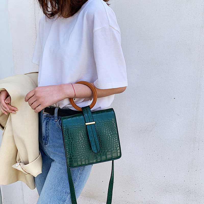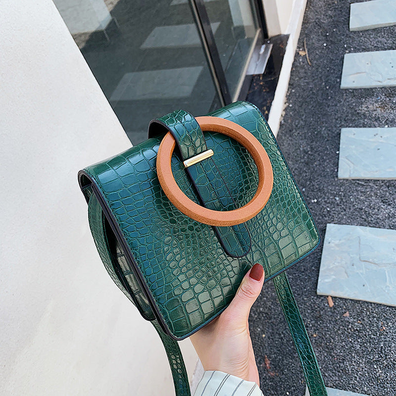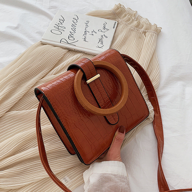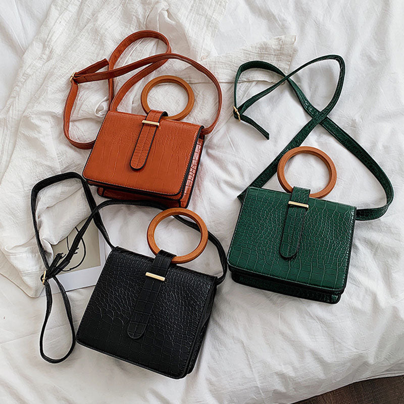 IELGY Women's bag one shoulder black crossbody square versatile casual crocodile pattern PU fashionable