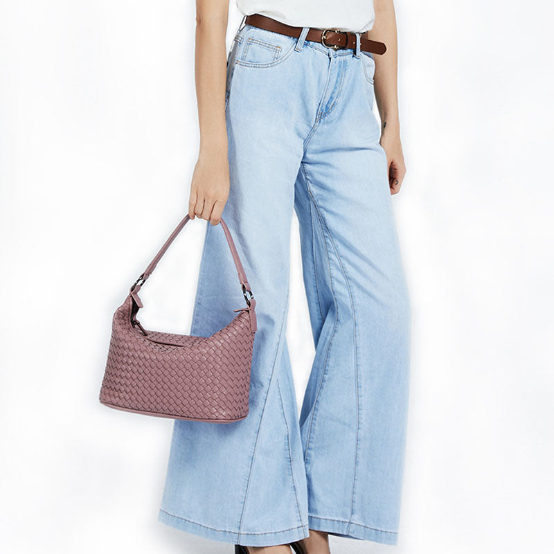 IELGY Women's bag One-shoulder Single Purple PU Woven All-match Soft surface Portable
