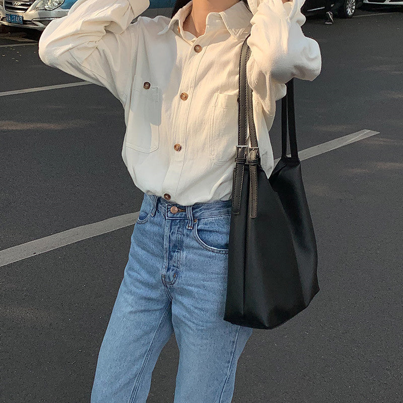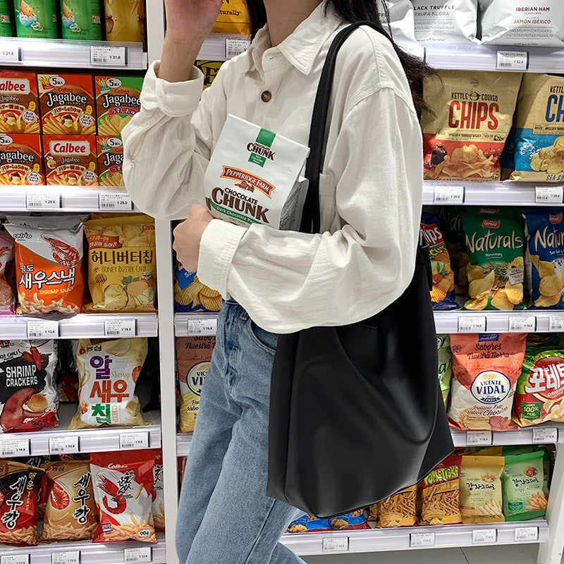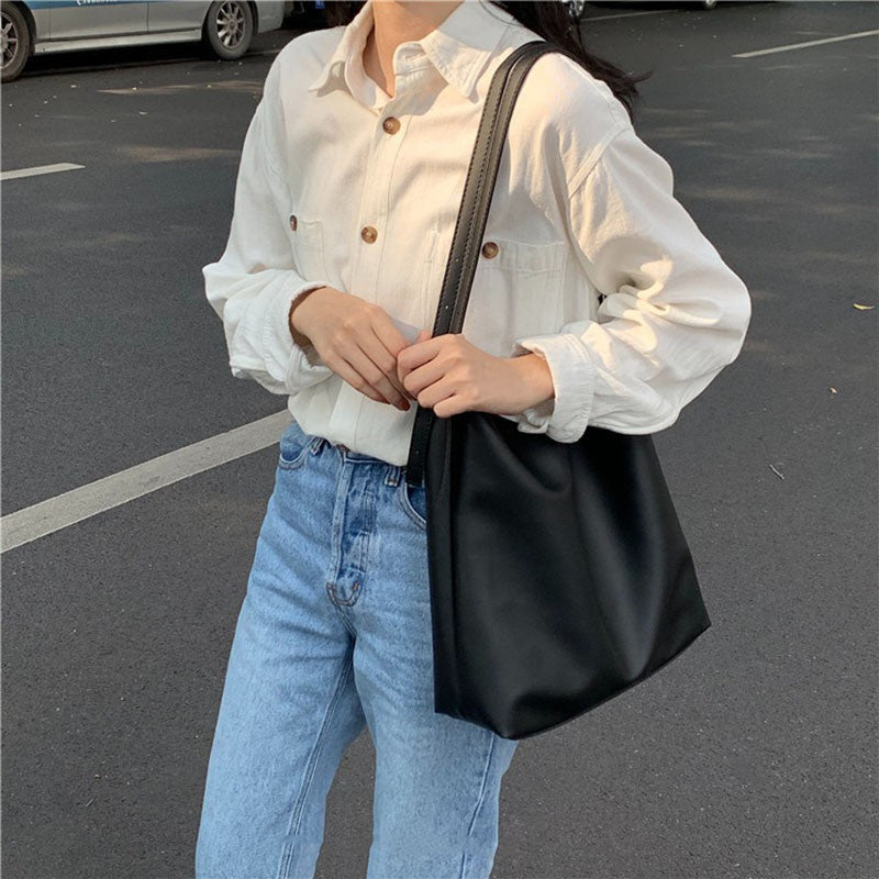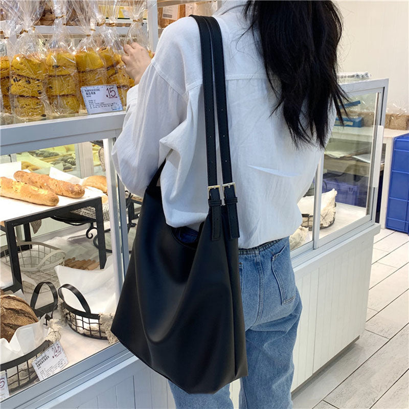 IELGY Women's bag Soft leather All-match PU Apricot One-shoulder Large capacity Black Portable