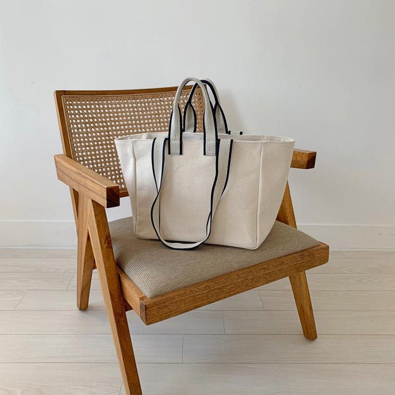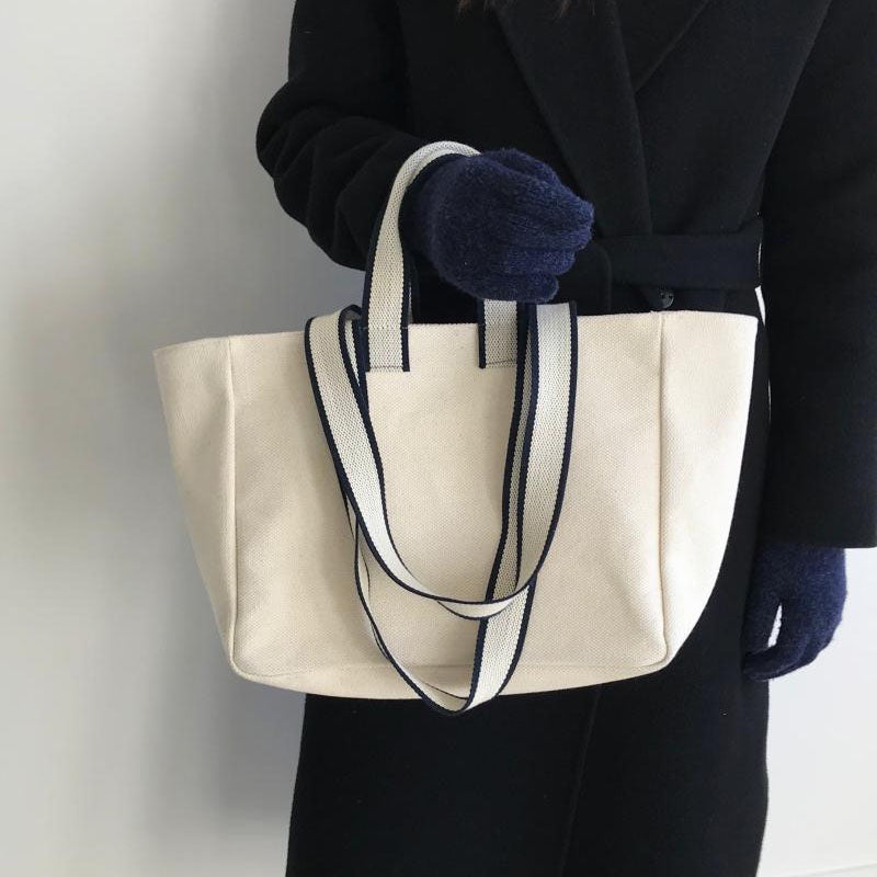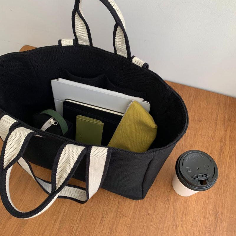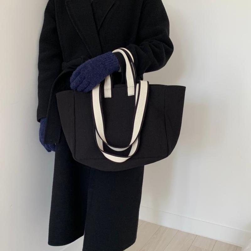IELGY Women's bag versatile large capacity black fashionable one shoulder simple casual portable canvas
