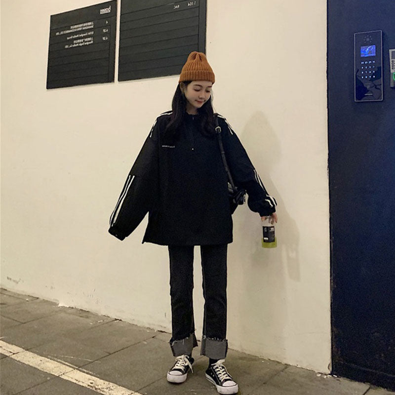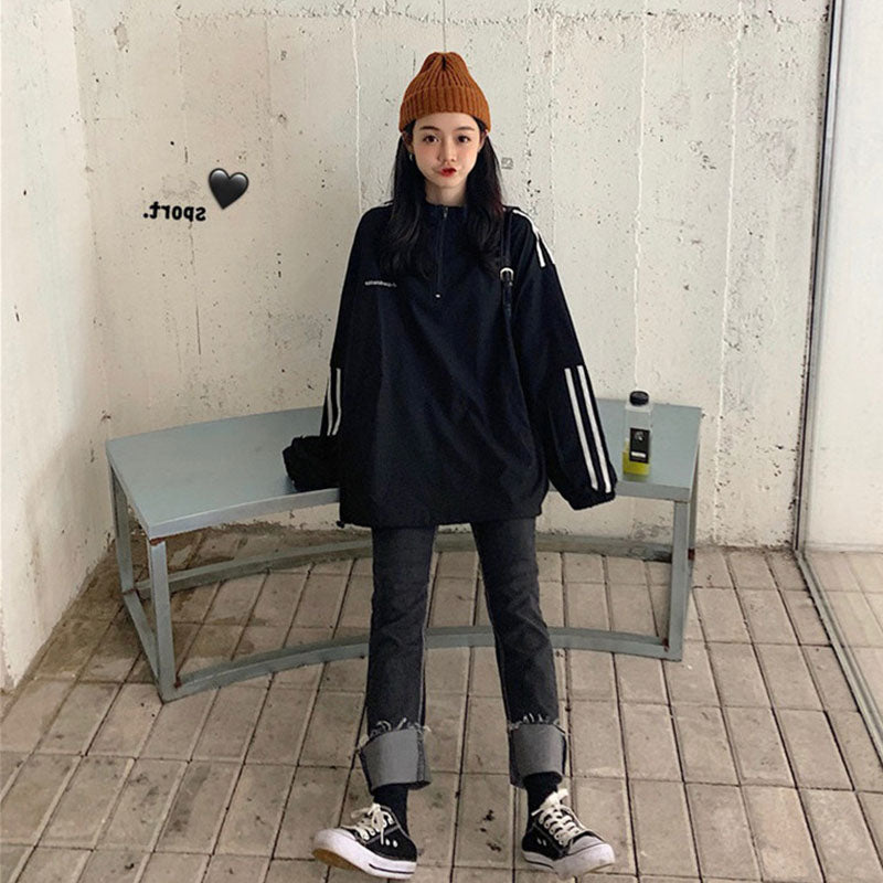 IELGY Women's clothes hoodies thin stripes all-match zippers tops fashion casual Korean
