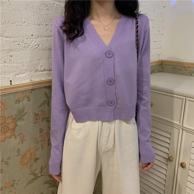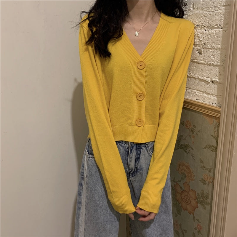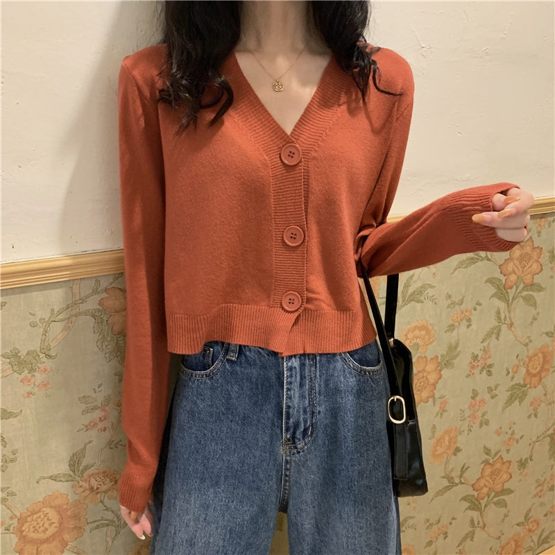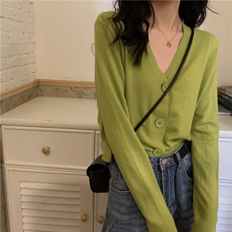 IELGY Women's clothes Jacket Simple Short Thin Knitted sweater Top Black V-neck Long-sleeved