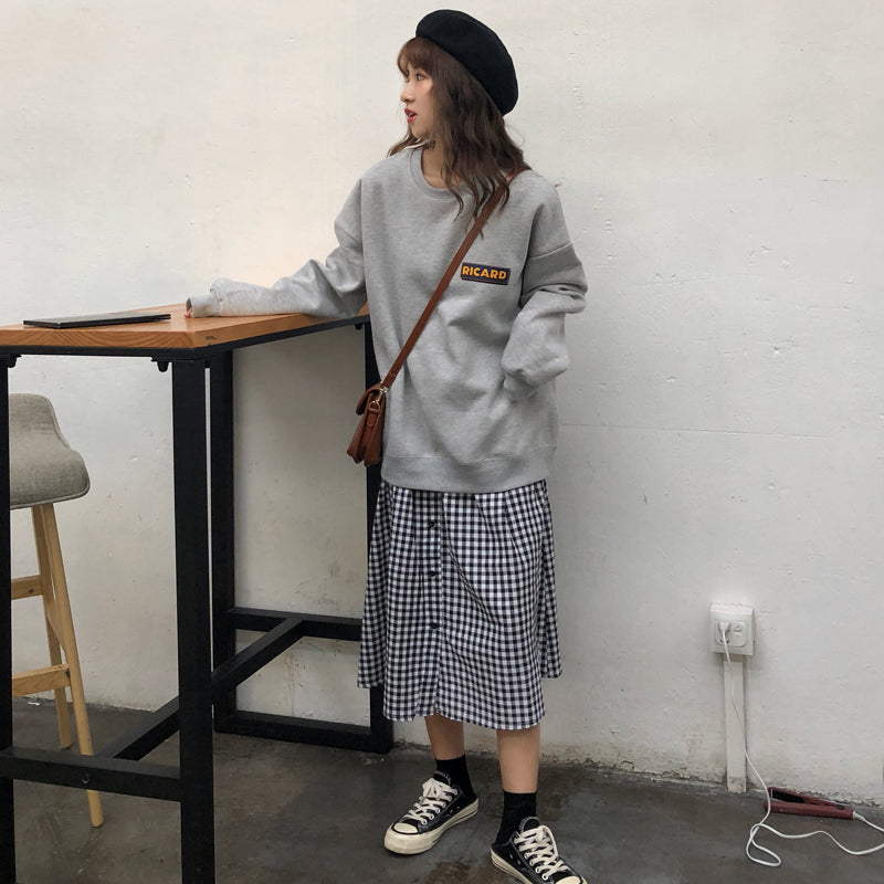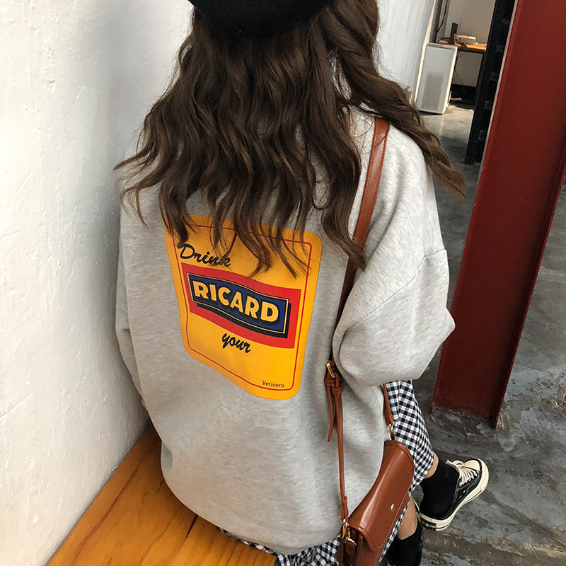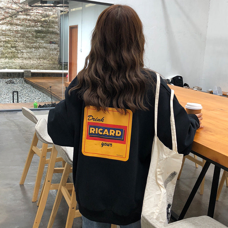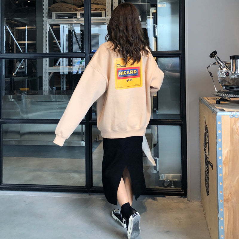 IELGY Women's clothes long sleeves all-match sweater casual fashionable Korean plus fleece loose pullover
