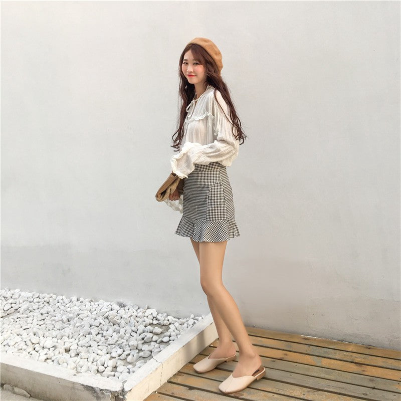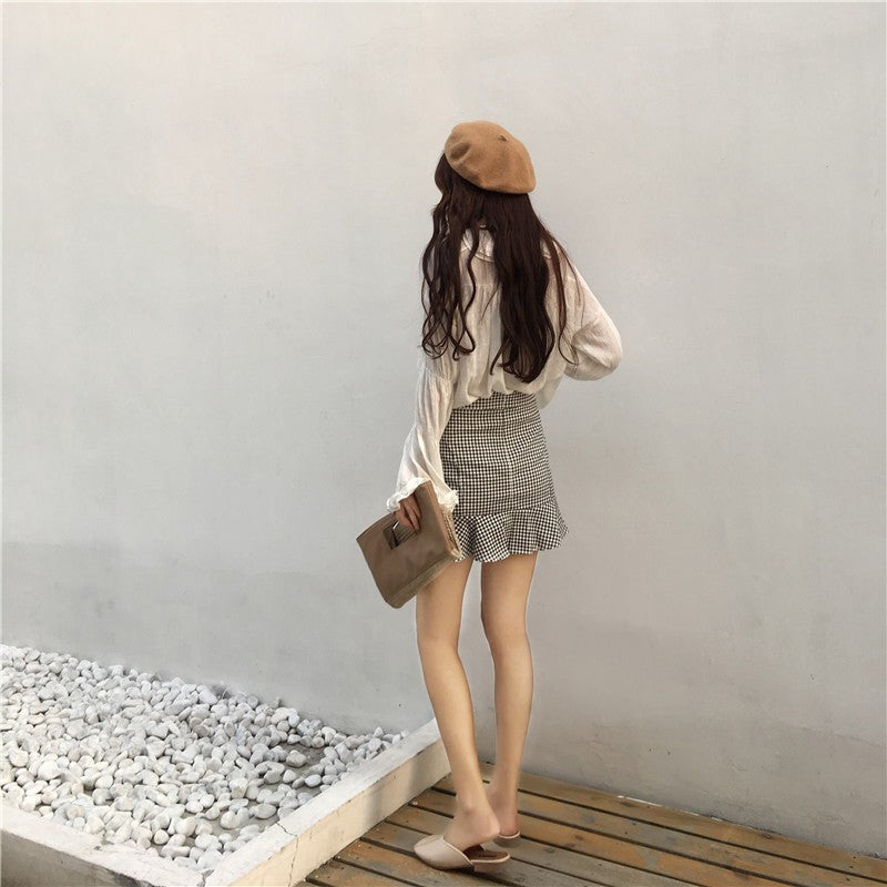 IELGY Women's fresh plaid bag hip A short skirt