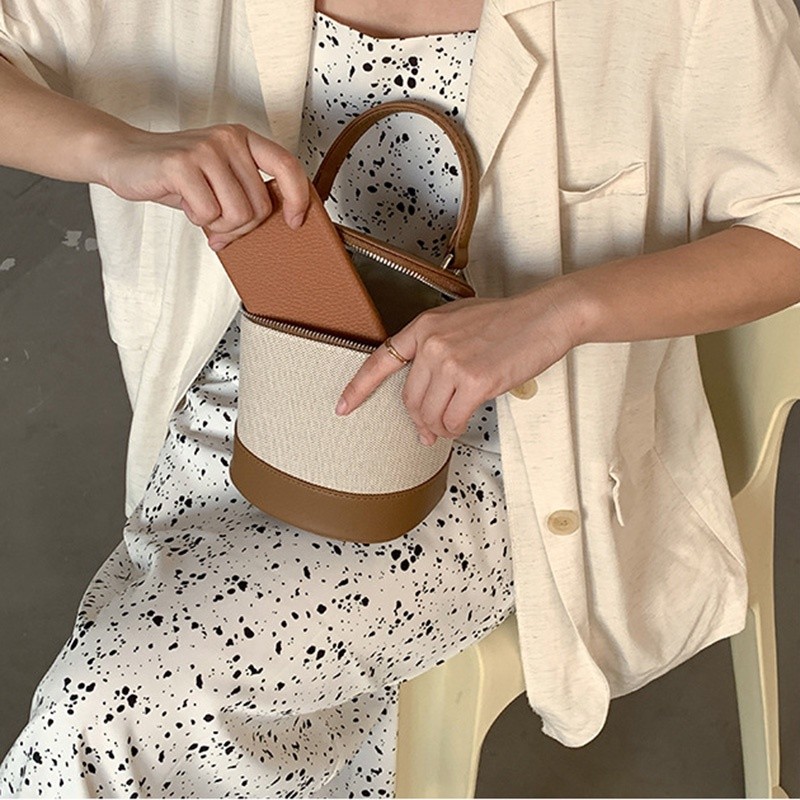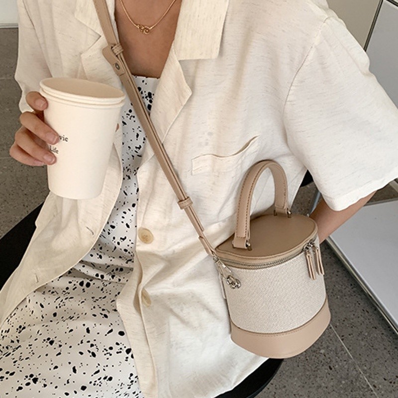 IELGY women's korean style stitching messenger bucket bag