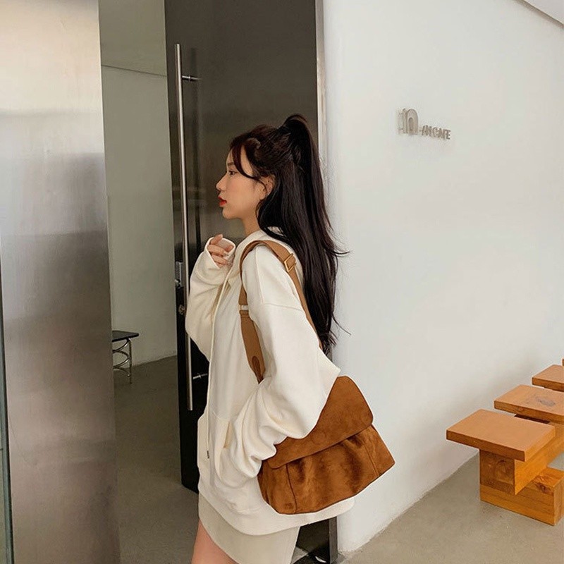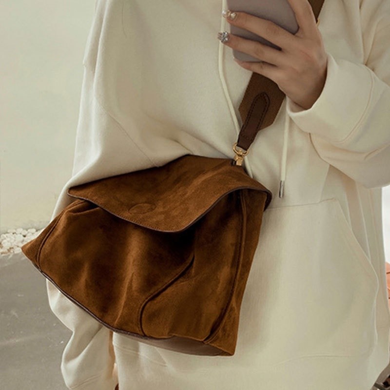 IELGY women's matte suede large capacity all-match college style messenger briefcase