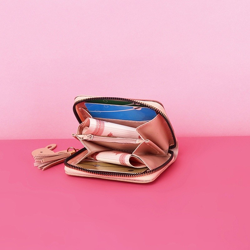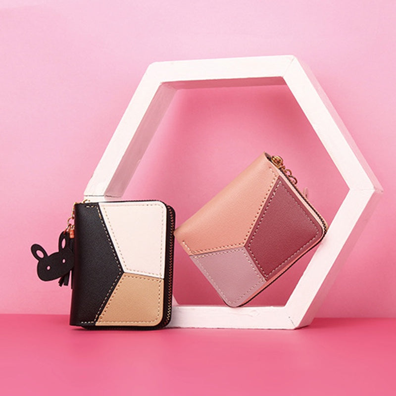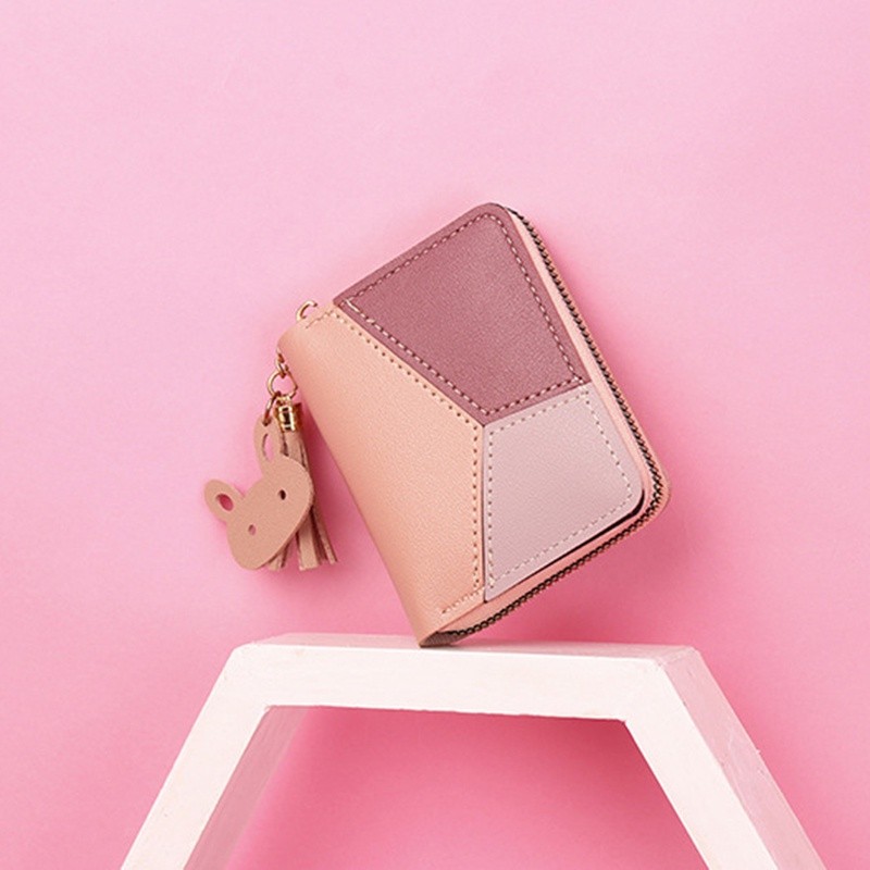 IELGY Women's Short Zipper Korean Style Stitching Contrast Color Tassel All-match Coin Purse
