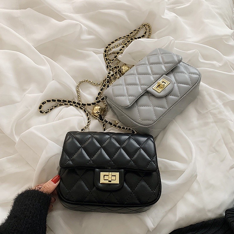 IELGY women's small golden ball fashion rhombus chain messenger bag