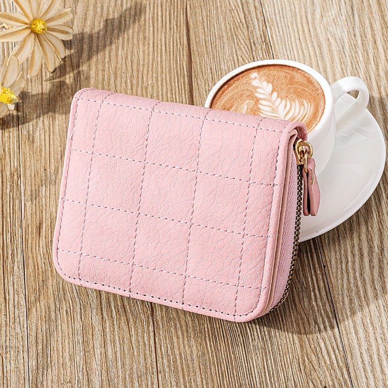 IELGY women's solid color zipper rhombic short wallet