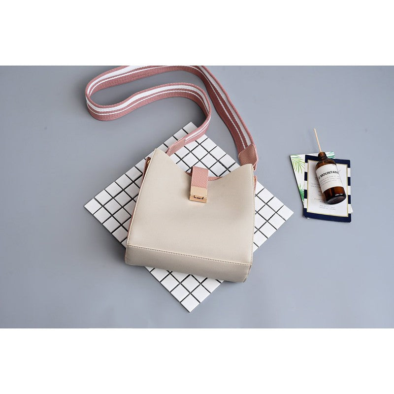 Wide shoulder strap contrast multi-layer bucket bag shoulder bag