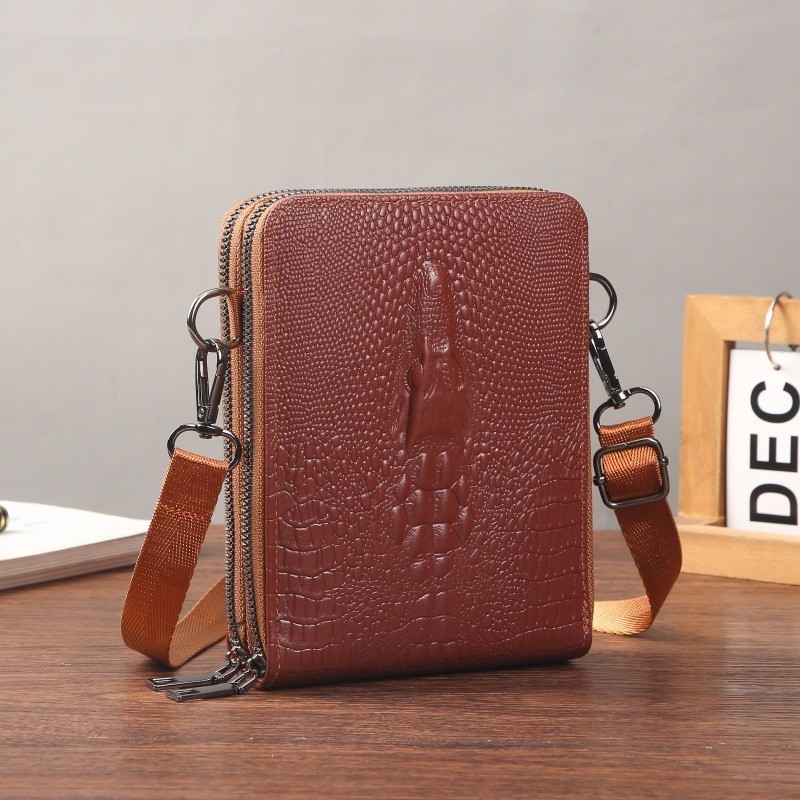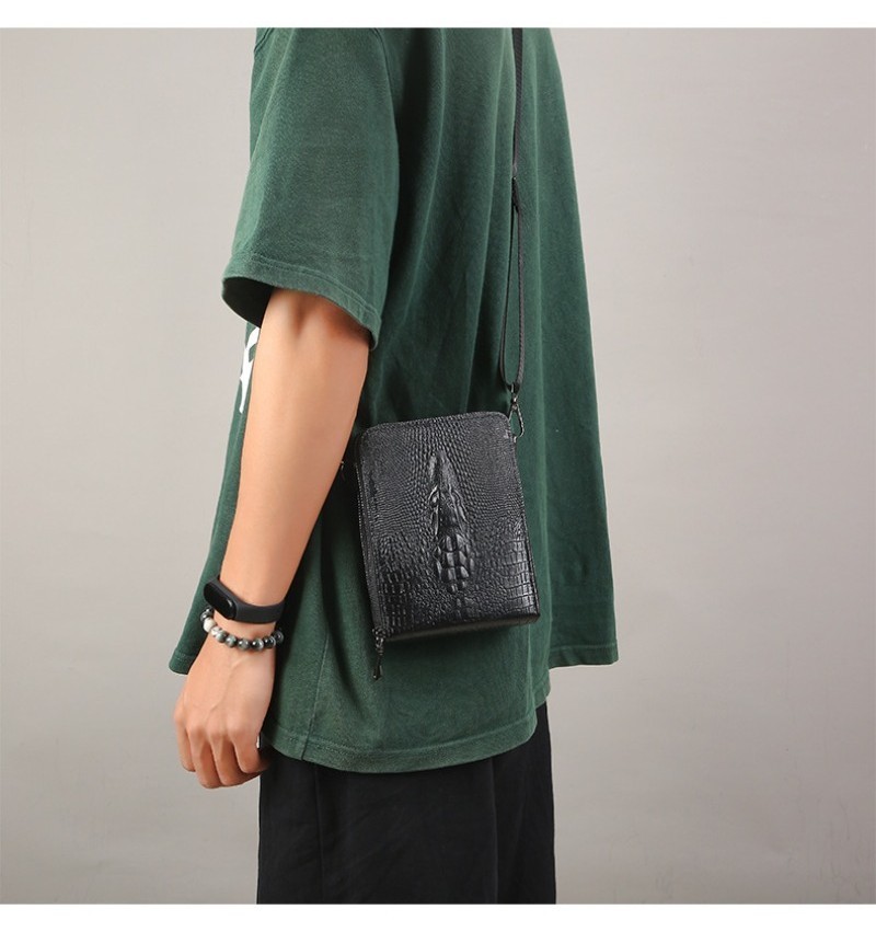 Ielgy Eryu Head Unique Men's Cross-body Crocodile Pattern One-shoulder Mobile Phone Bag